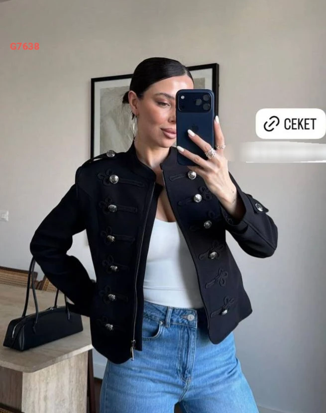 جاكيت بسحاب مع أزرار فضي
