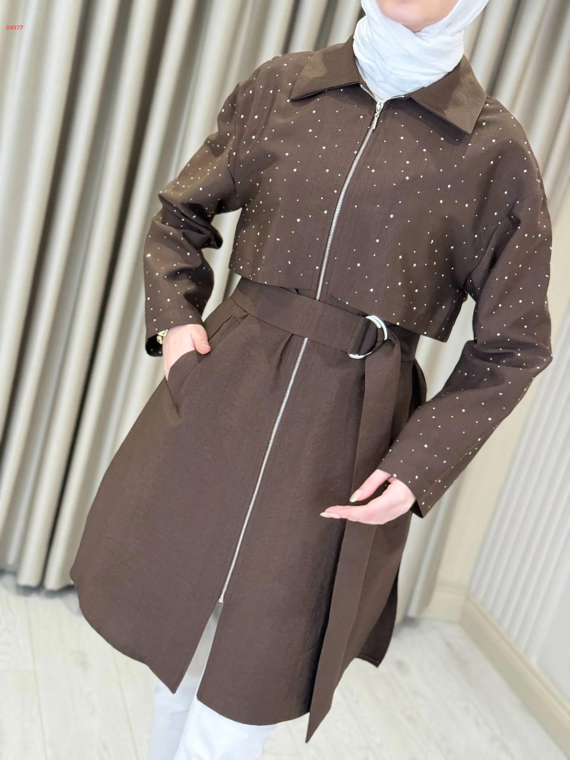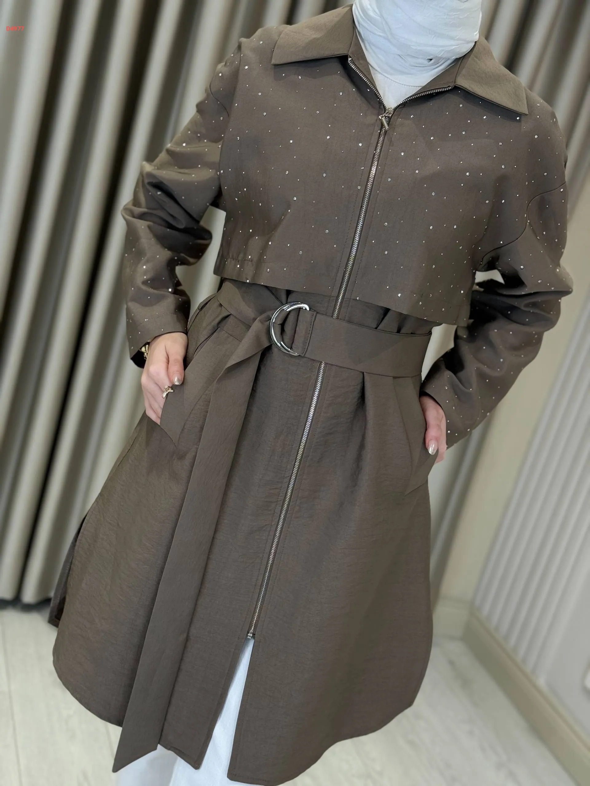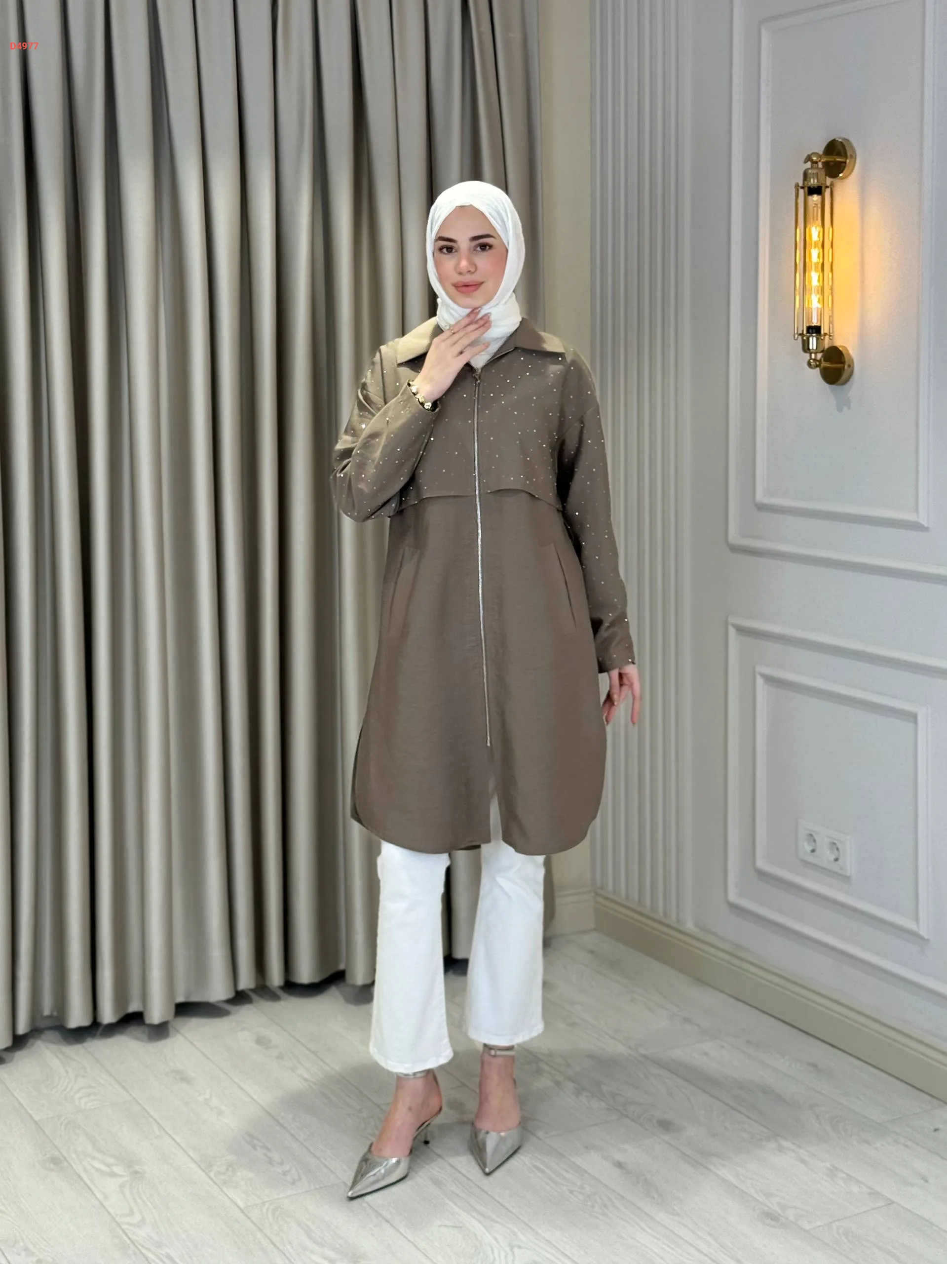 جاكيت شتوي طويل بتفاصيل مخطط...