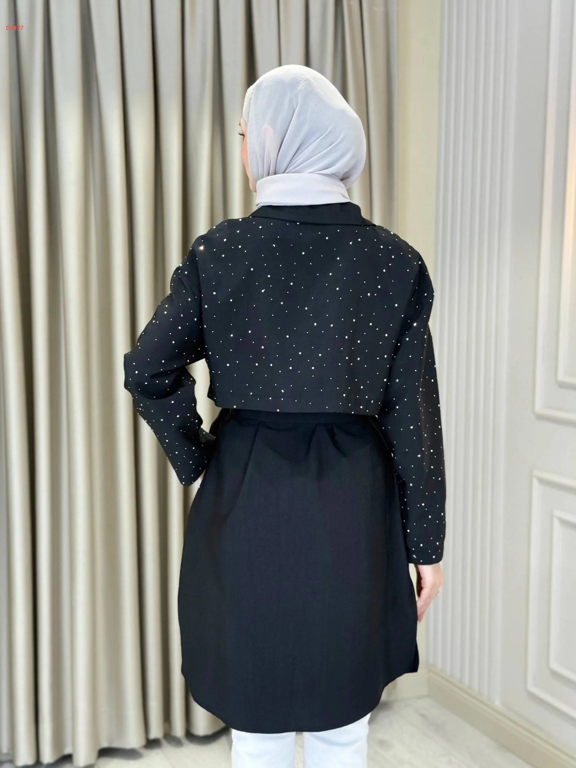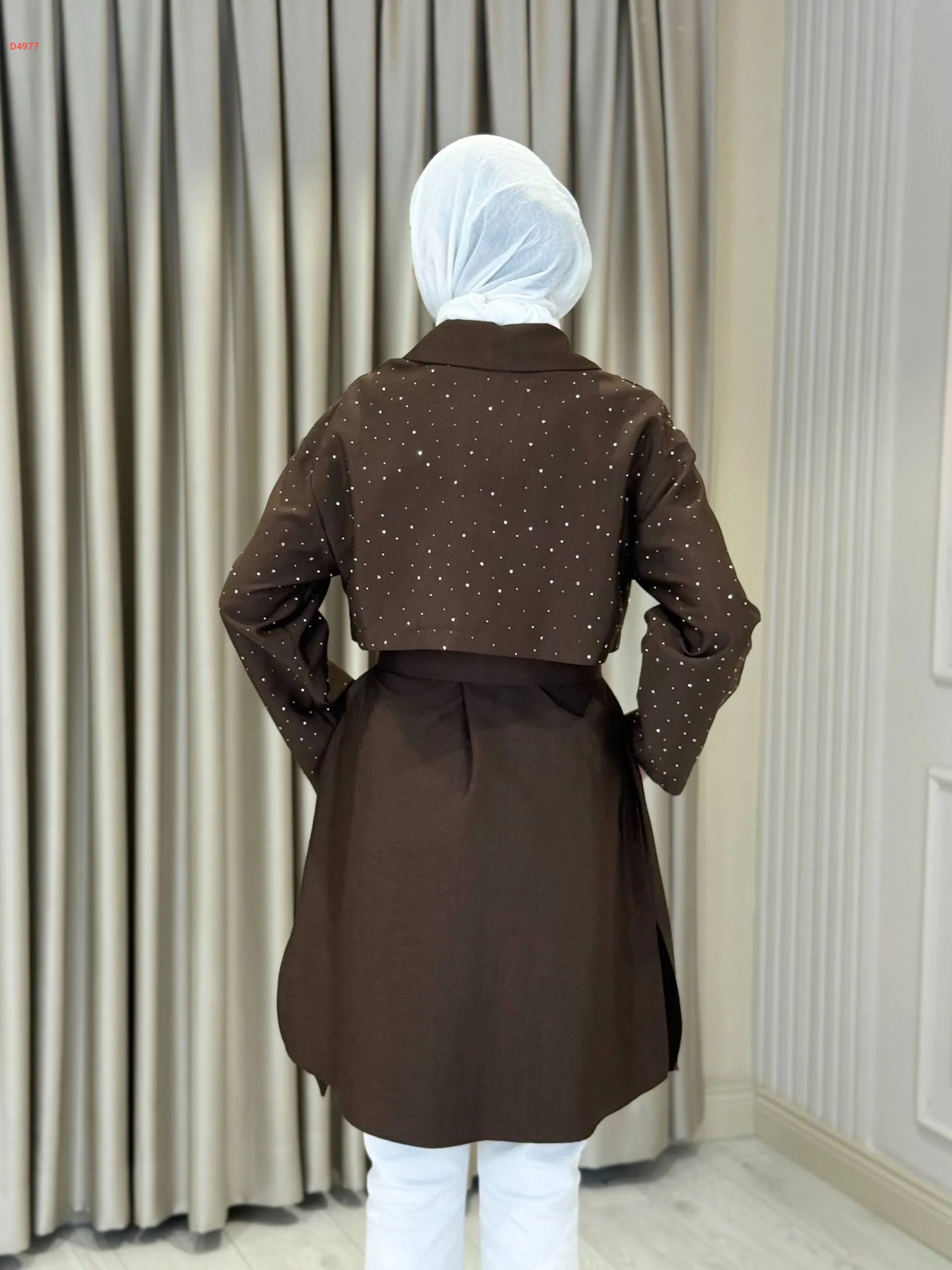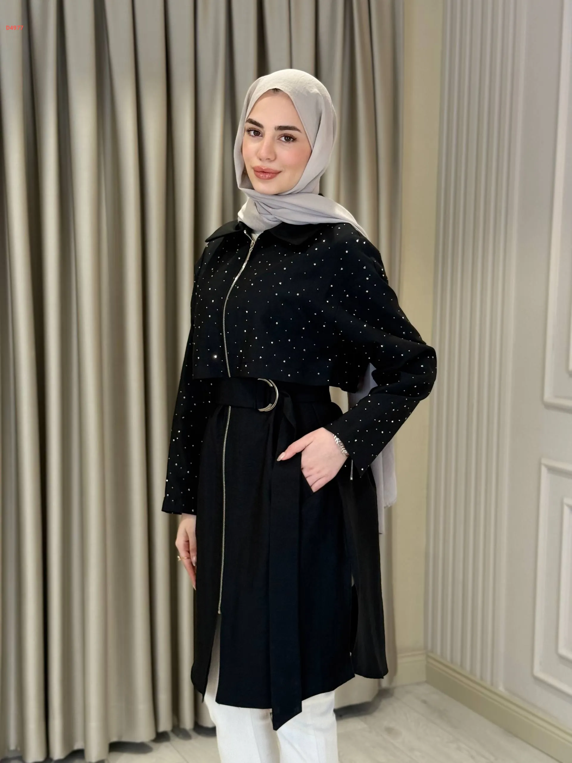 جاكيت شتوي طويل بتفاصيل مخطط...