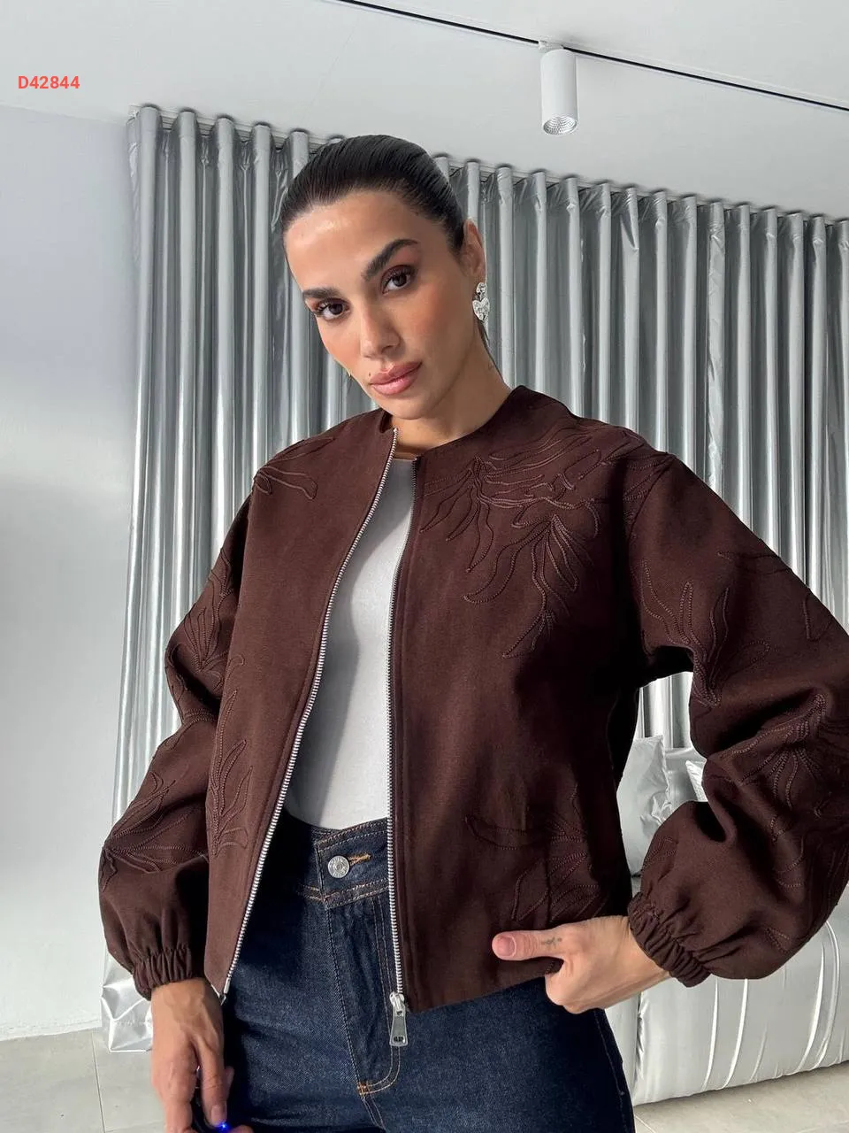 جاكيت مطرز بسحاب
