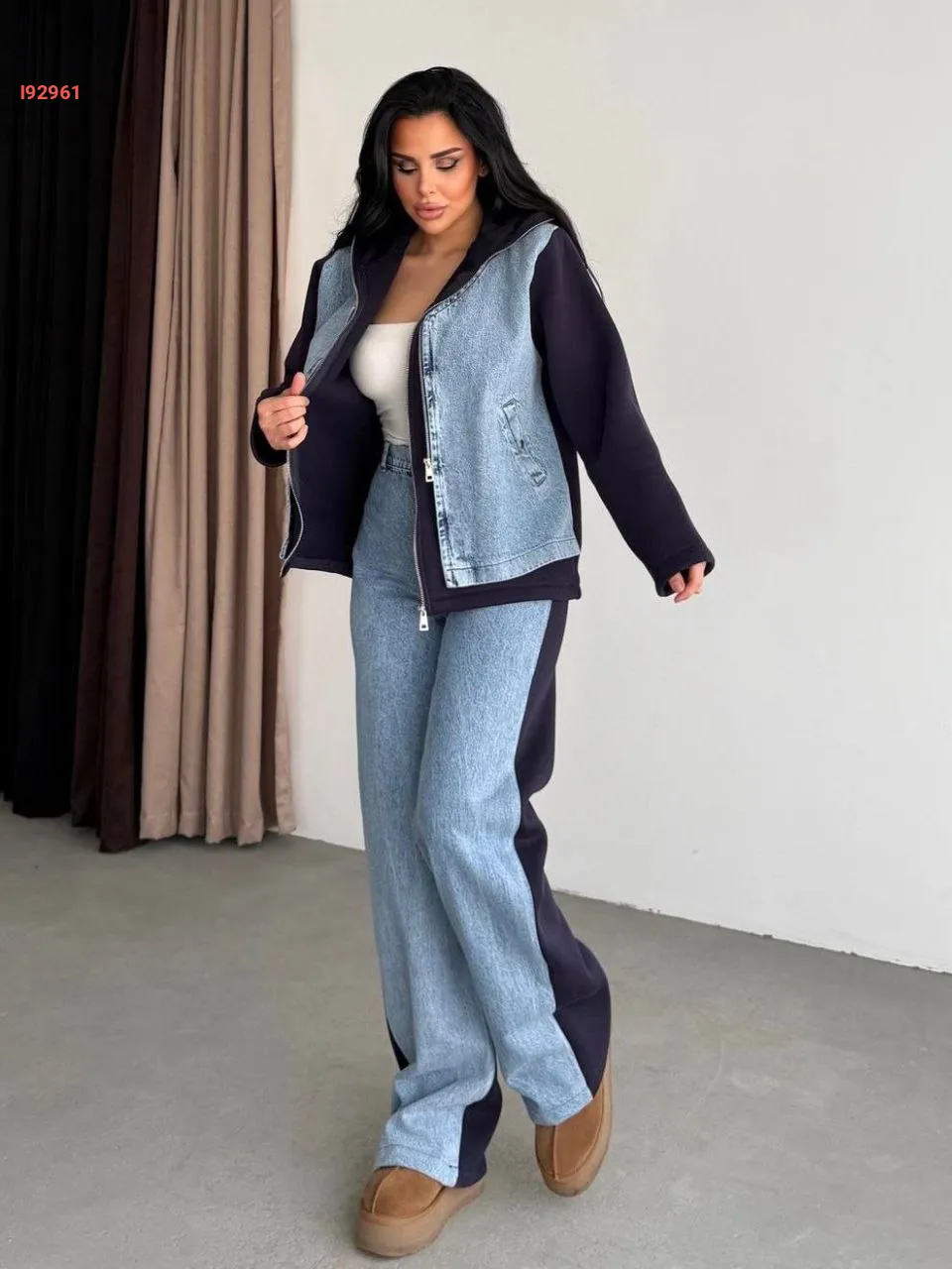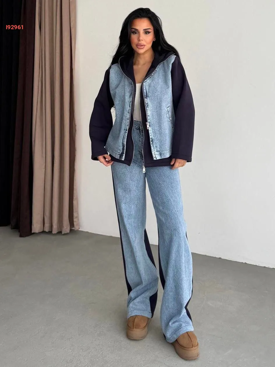 طقم جينز بسحاب