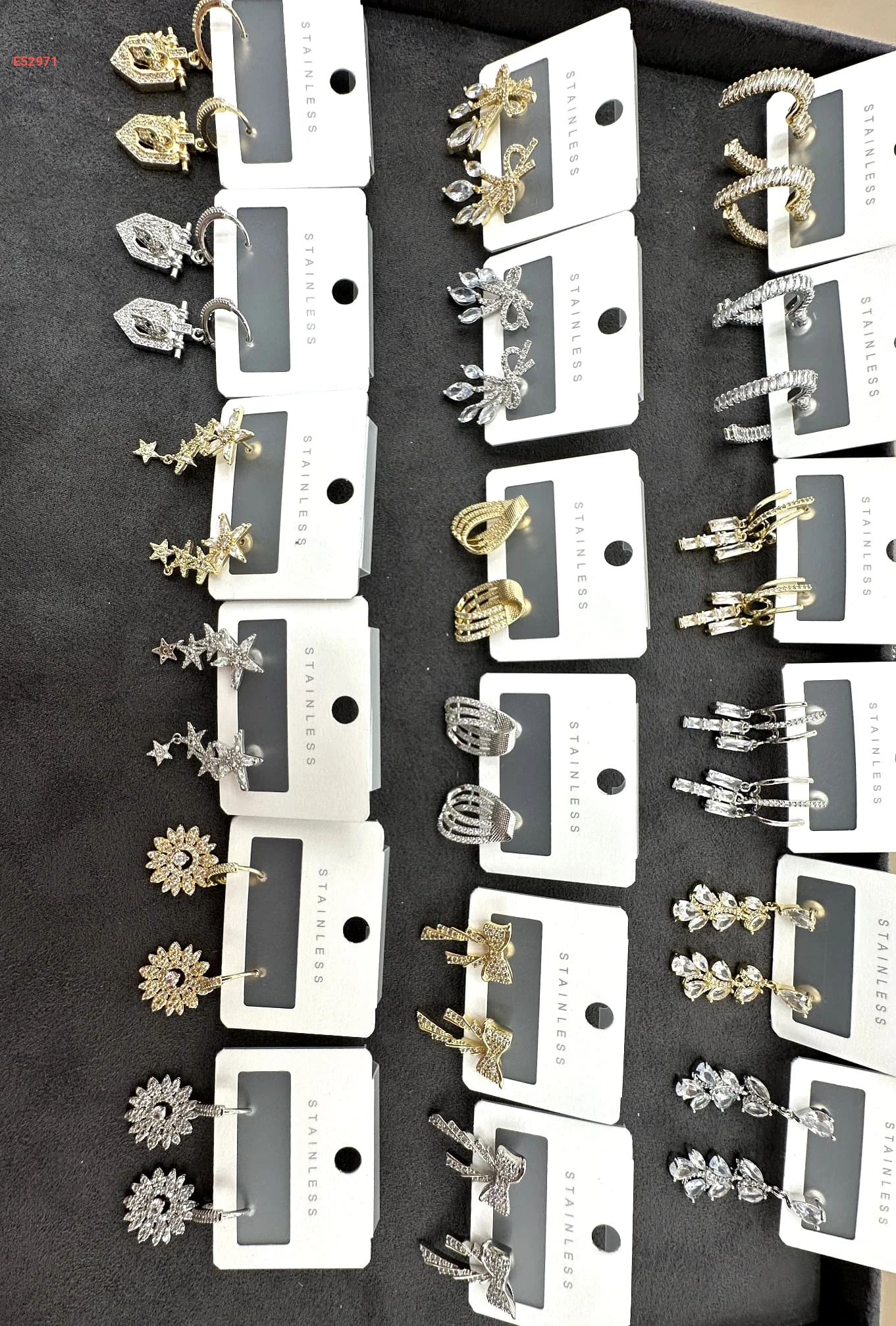 حلق زيركون مرصع بالالماس الفضي والذهبي