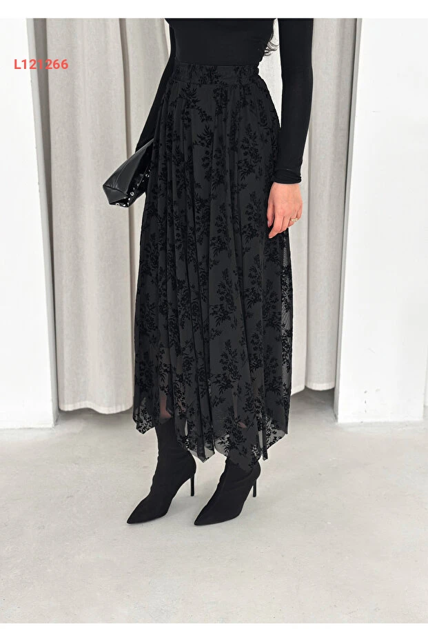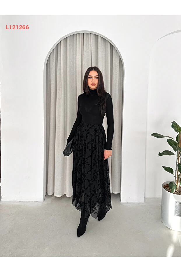 اكتشفي أناقتك مع تنورة زولا مودا التفتهة ذات التصميم غير المتماثل، المصنوعة من التول الفاخر والمزينة بنقوش مزدوجة رائعة تضفي لمسة من الفخامة على إطلالتك. تم تصميم هذه التنورة لتضمن لك راحة الحركة وأناقة لا مثيل لها، مما يجعلها الخيار المثالي للمناسبات الخاصة أو الاستخدام اليومي. ارتديها مع بلوزة بسيطة لإطلالة متكاملة تجمع بين الأناقة والاحتشام.