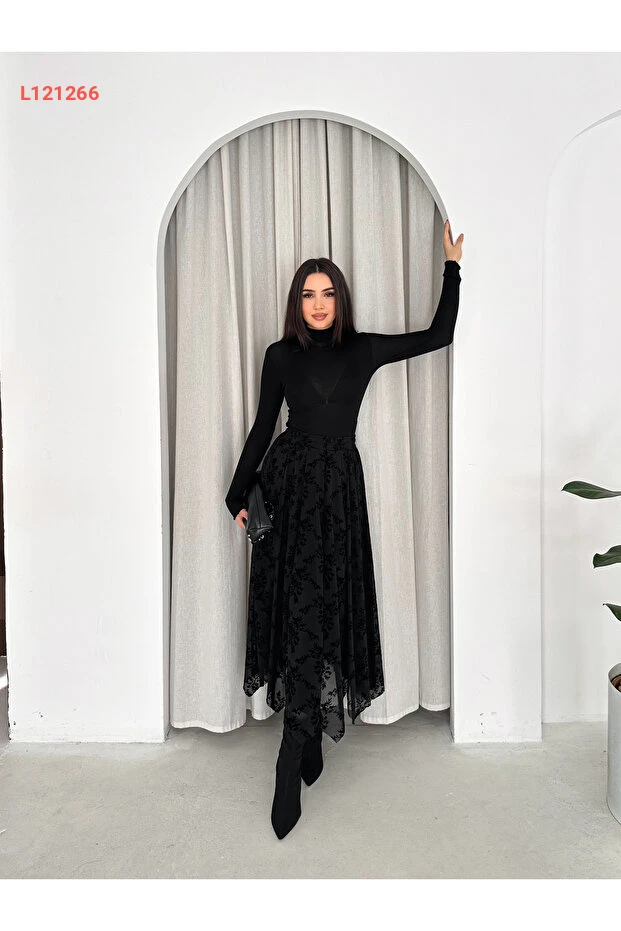 تنورة تول فلوك بروح مودست بتصميم غير متماثل