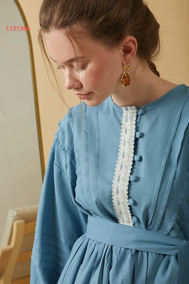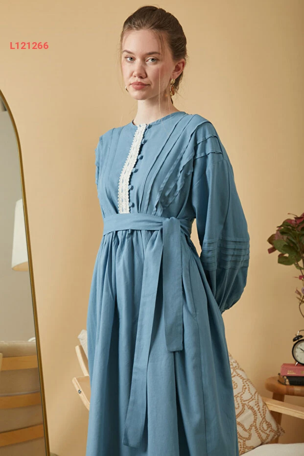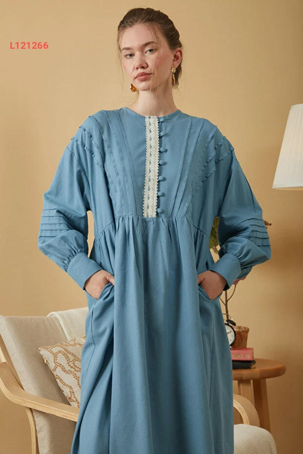 تألقي بأناقة مع فستان ZÜLAYS الذي يتميز بتفاصيل الدانتيل الرائعة والتنورة المنقوشة، حيث يجمع بين الفخامة والراحة. بلون أزرق جذاب، هذا الفستان هو الخيار المثالي لمناسباتك الخاصة، مما يمنحك إطلالة متميزة تعكس أنوثتك وجاذبيتك.