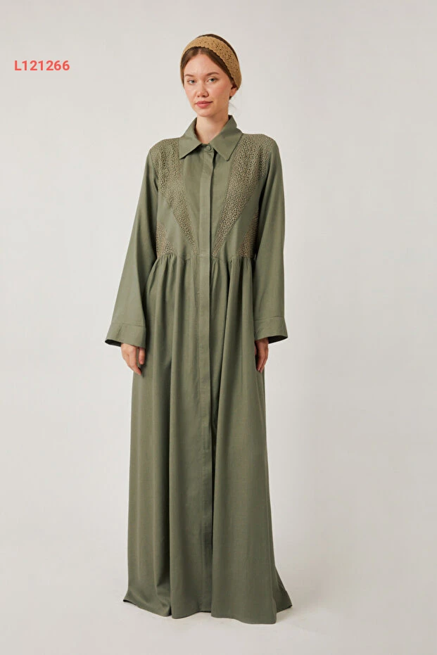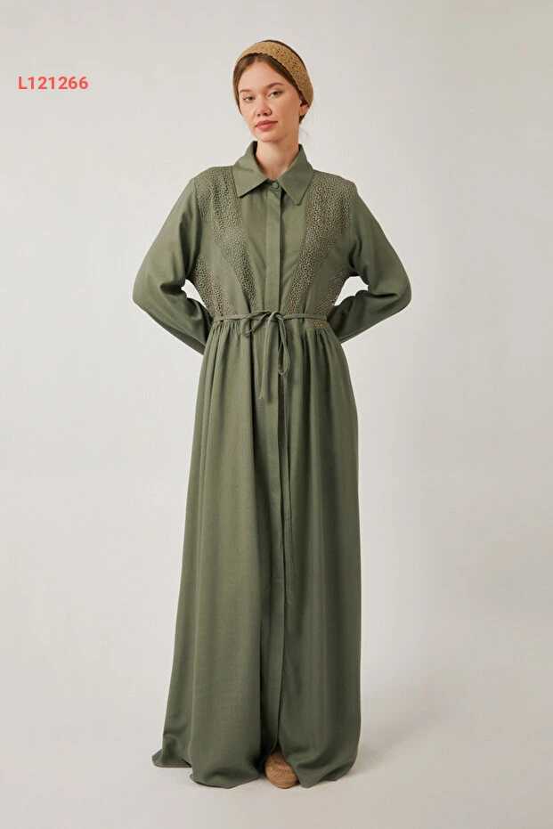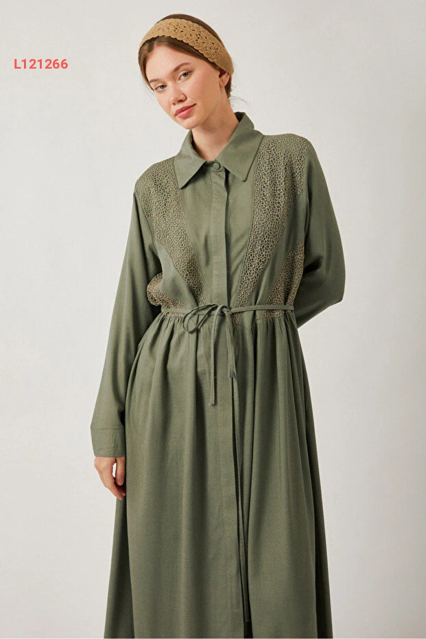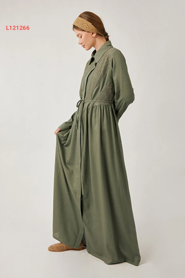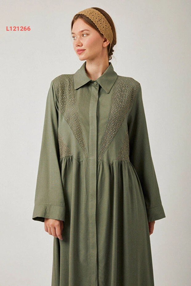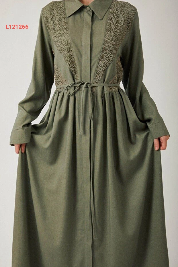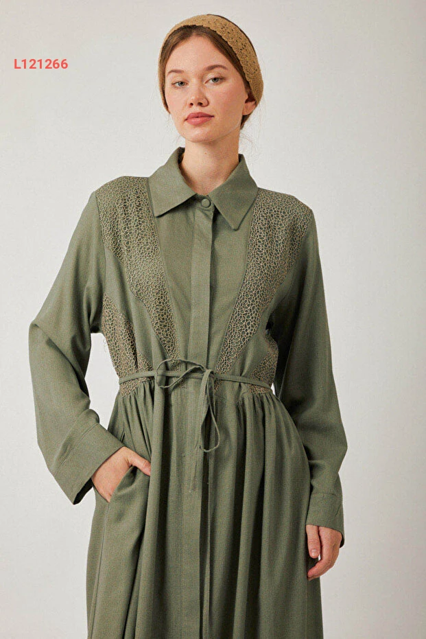 استمتعِ بالأناقة والراحة مع فستان "ZÜLAYS" ذو الأزرار المخفية والدانتيل الساحر بلون الهاكي. يمنحك تصميمه الفريد لمسة عصرية، بينما تضفي تفاصيل الدانتيل لمسة رومانسية على إطلالتك. مثالي للمناسبات المختلفة، سيوفر لك هذا الفستان الجاذبية والثقة في كل خطوة.