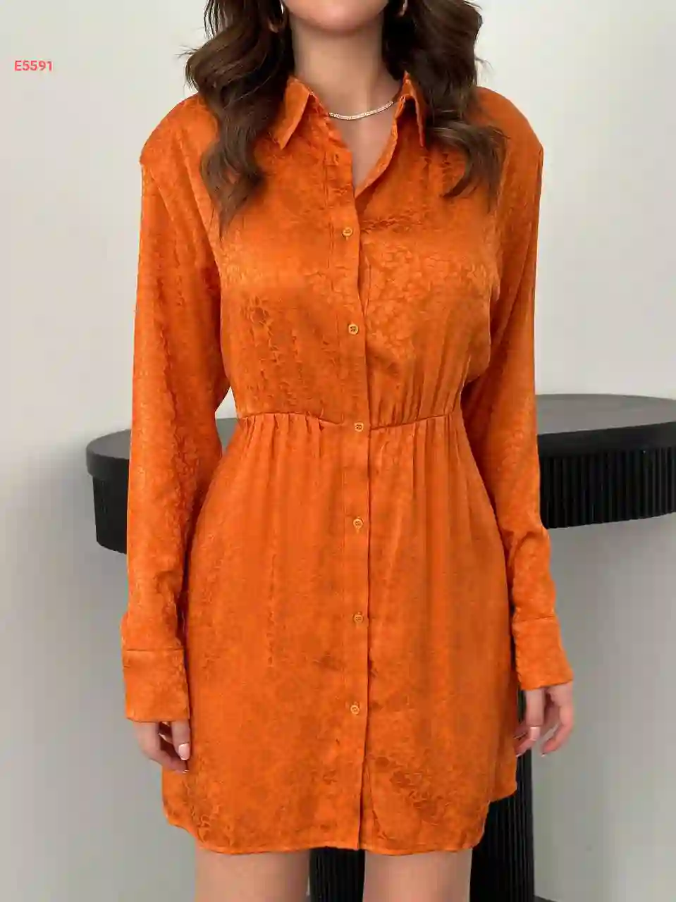 فستان قصير جاكار بأزرار