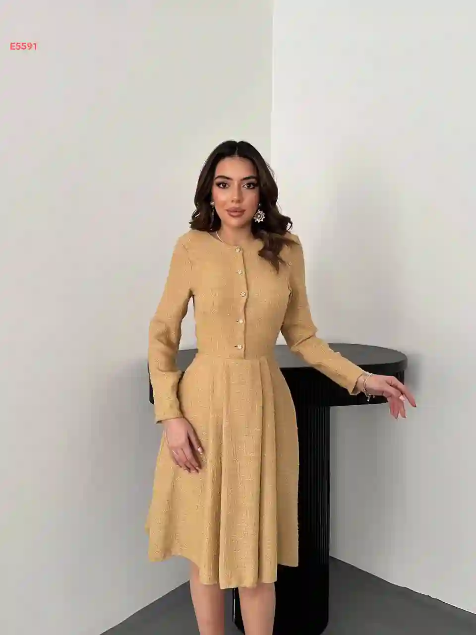فستان طويل بأزرار علوية