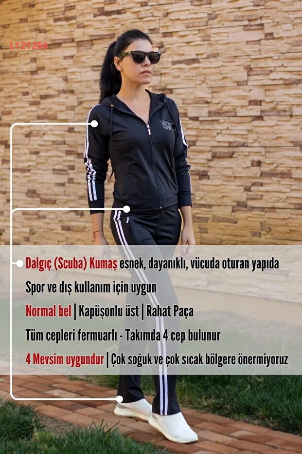 اكتشفي أناقة الراحة مع طقم الرياضة Azıcık، الذي يأتي بتصميم أنيق باللونين الأسود والأبيض. مصنوع من قماش دالغيت العالي الجودة، يوفر لك حرية حركة مثالية ومظهر عصري. يتميز بسحاب عملي، مما يجعله الخيار المثالي لمناسباتك الرياضية أو للاستخدام اليومي.