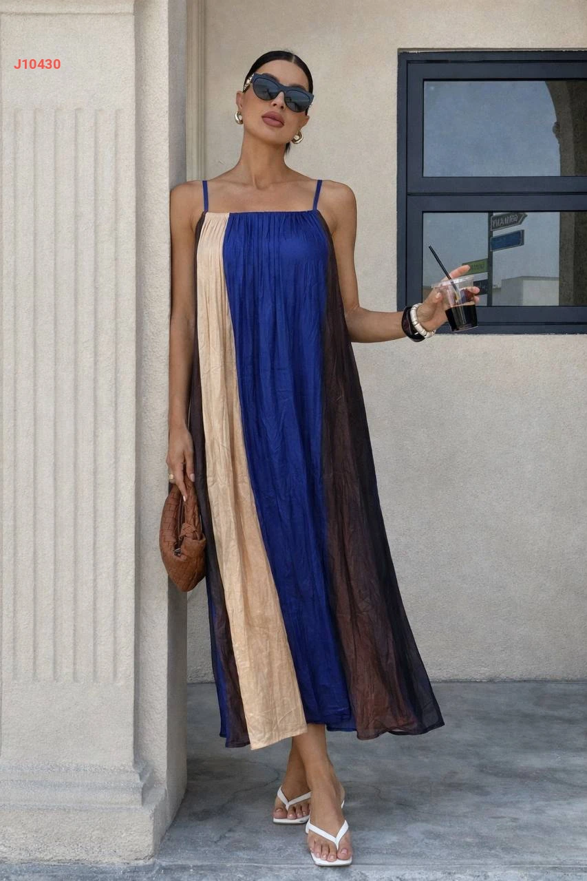 فستان طويل ملون بحمالات رفيعة
