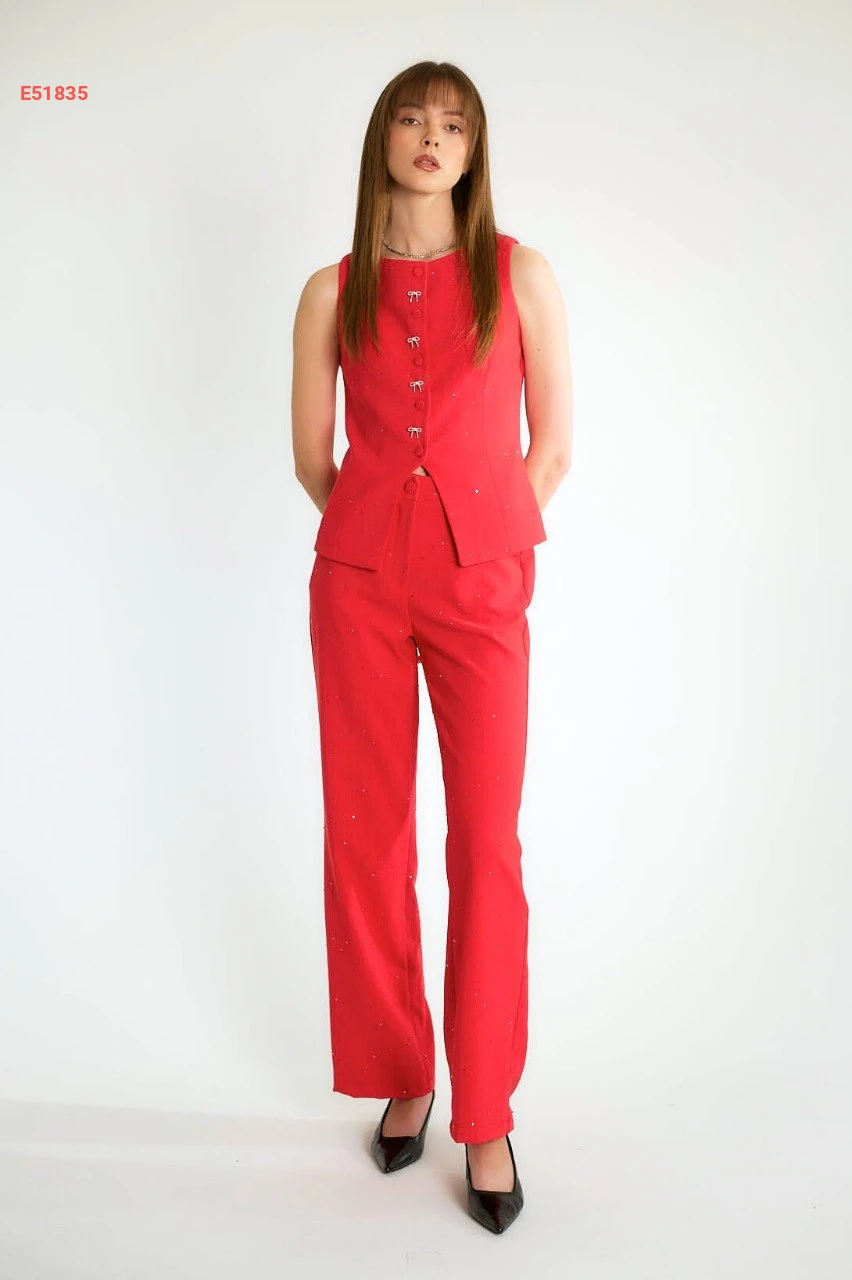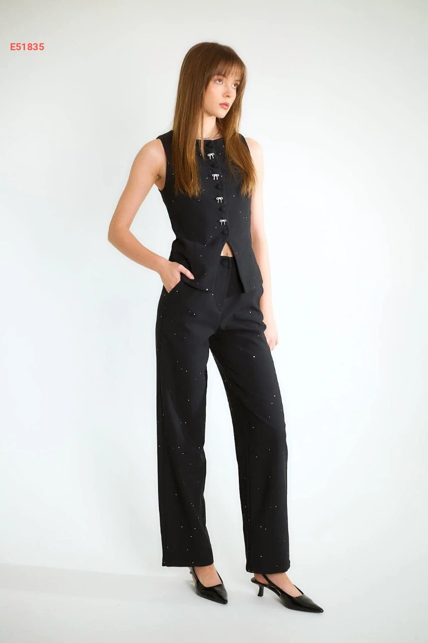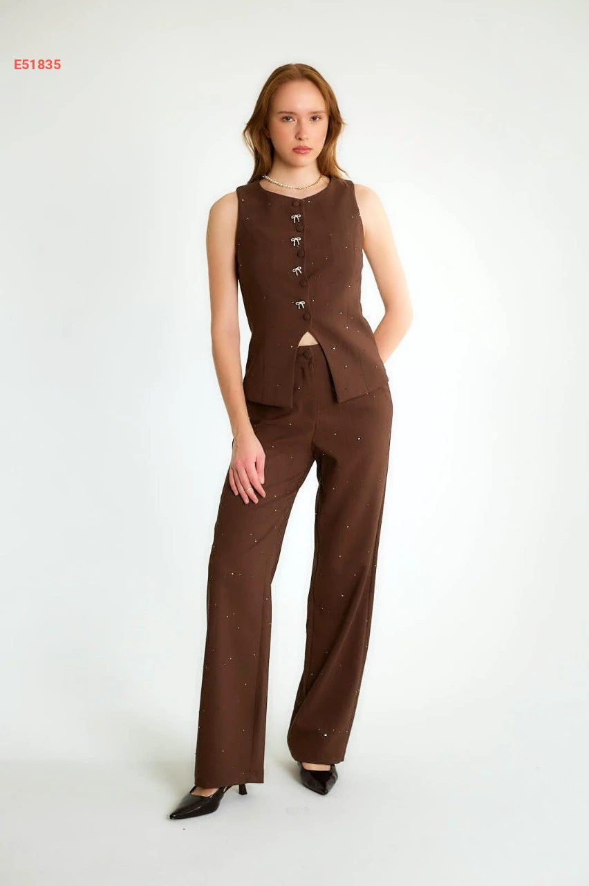 طقم بنطال ويلك بتفاصيل حجرية وفيونك