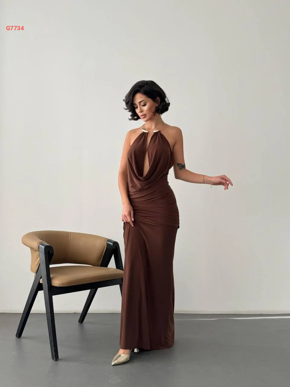 فستان مكشوف الظهر باكسسوار عالرقبة