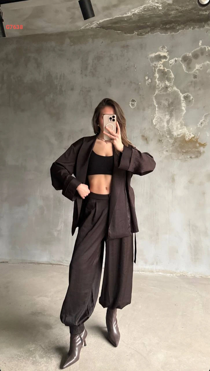 طقم بنطال بالون وجاكيت بزنار