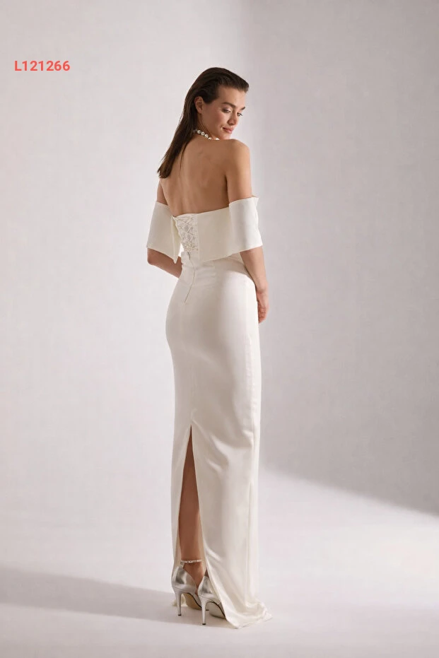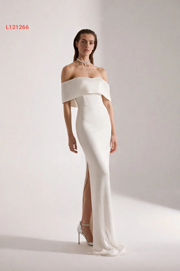 اكتشفي تألقك مع فستان العروس الأبيض من Betty & Sam، بتصميمه الأنيق ذو ياقة مادونا الذي يعكس الفخامة والرومانسية. مصنوع من الساتان الناعم الذي يضمن لكِ الراحة والجاذبية في يومك المميز، حيث يجمع بين الأناقة الكلاسيكية ولمسة من العصرية لتكوني نجمة حفلك.