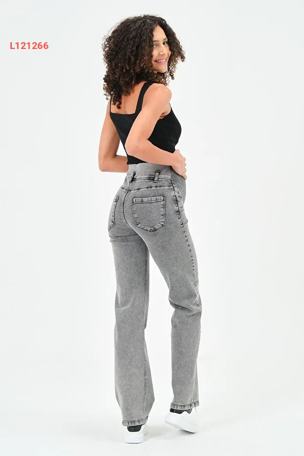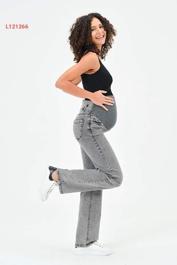 بنطال جينز واسعة بسحاب خلفي وحزام مرن للحوامل بلون رمادي