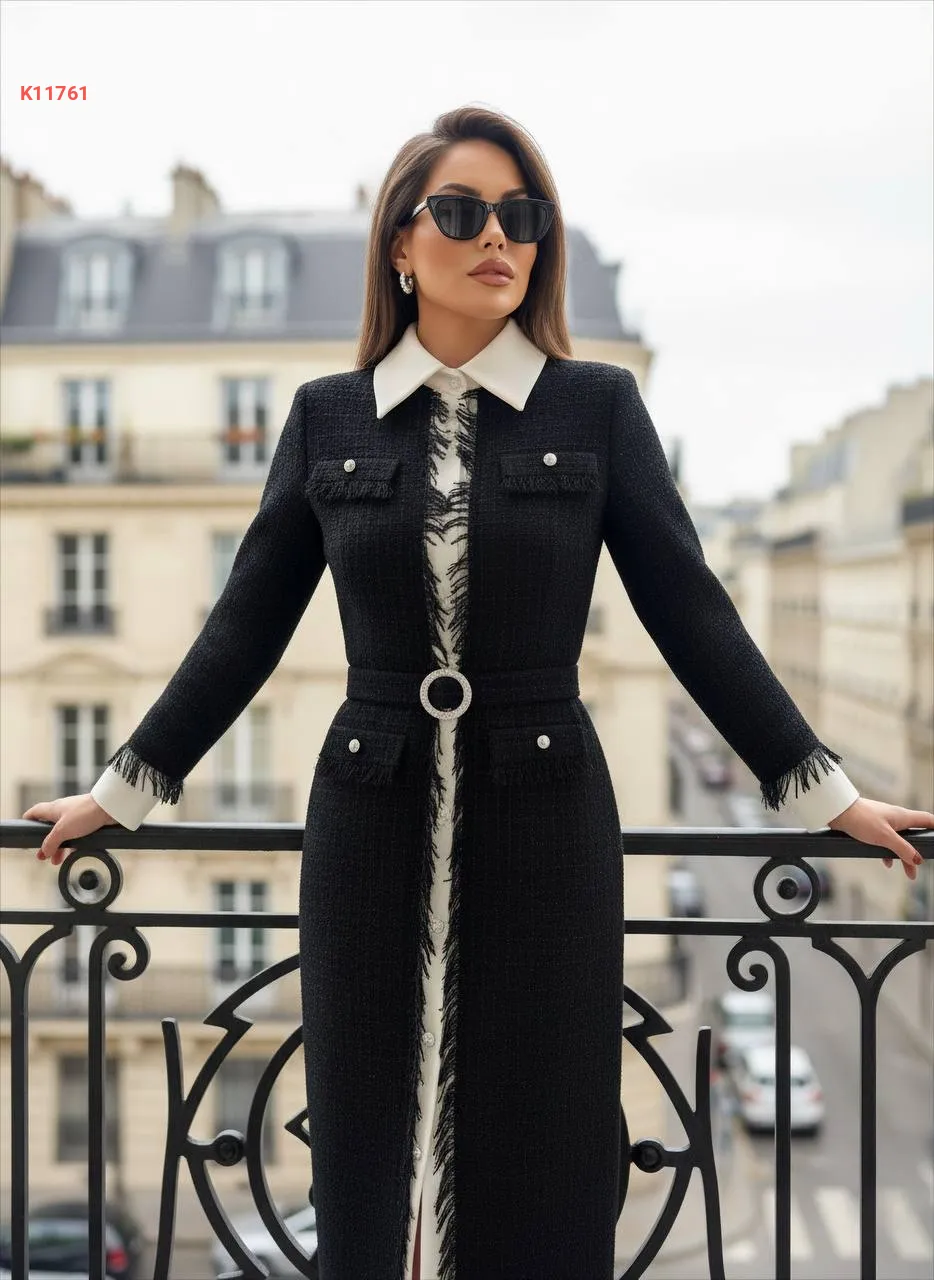 فستان شانيل مع أزرار وبروش