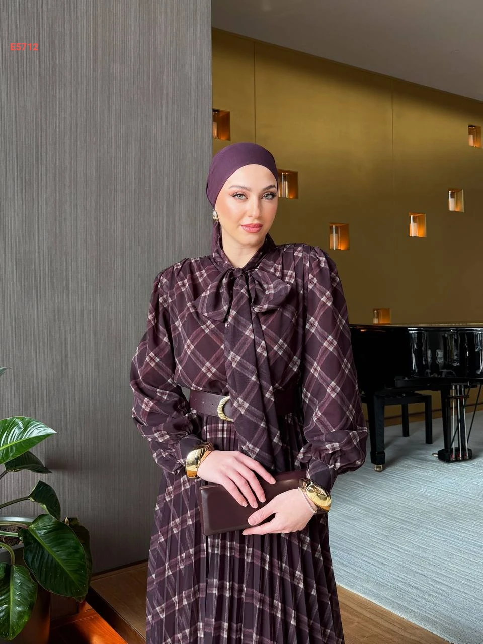 فستان شيفون كارو بربطة عنق