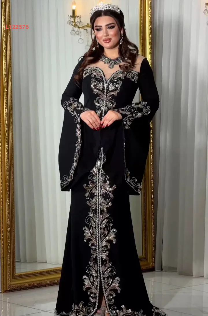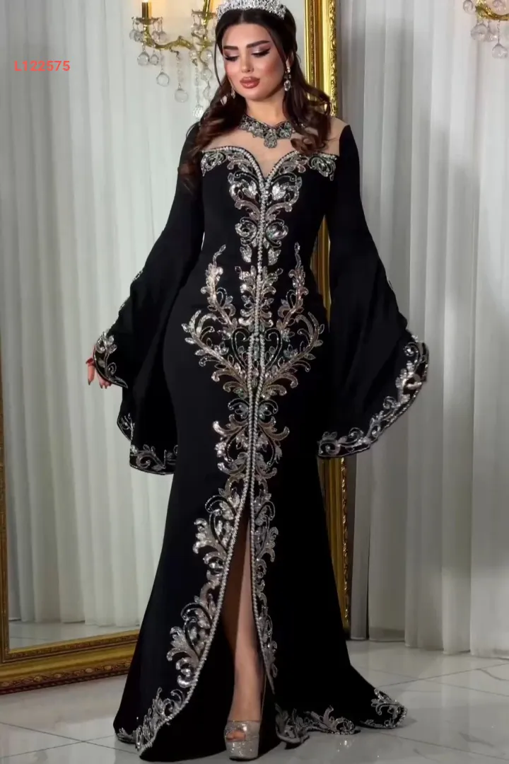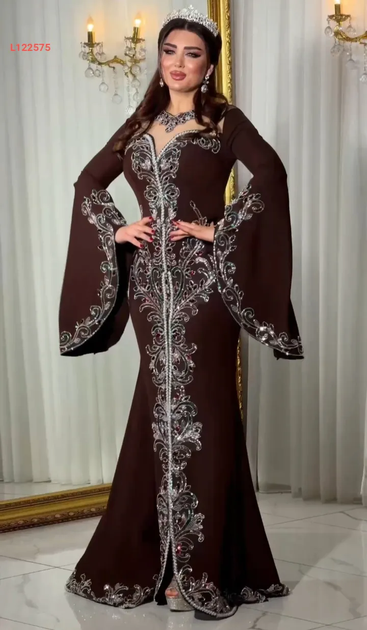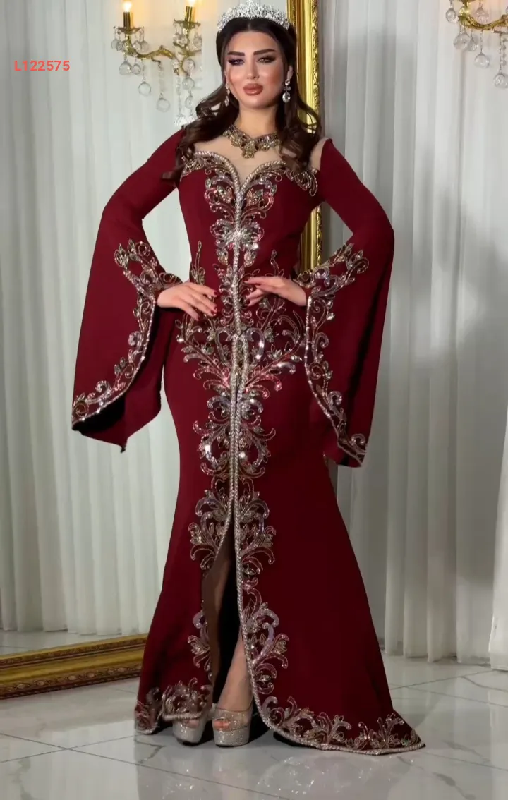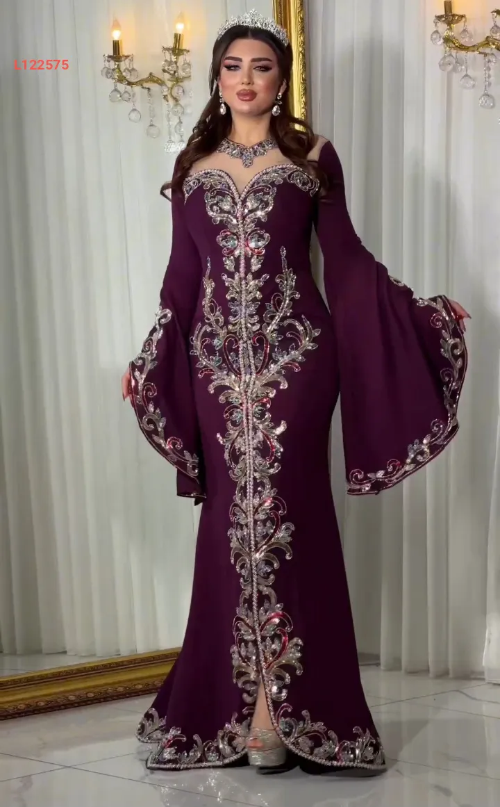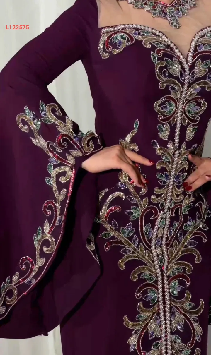 فستان سهرة نطريز ملون بأكمام كلوش