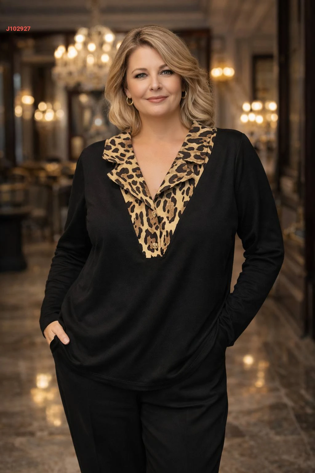 بلوزة كريستال بياقة تايغر