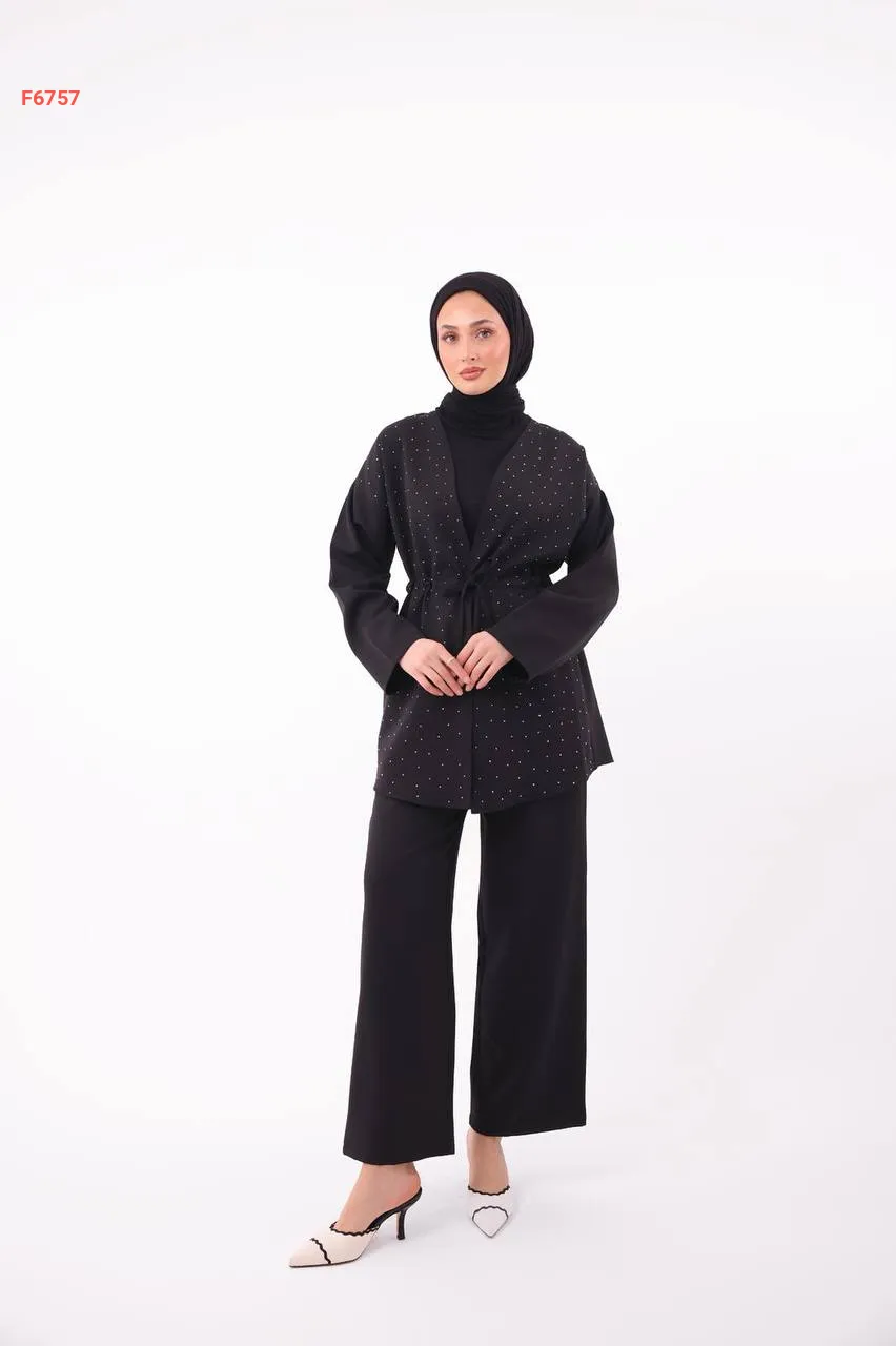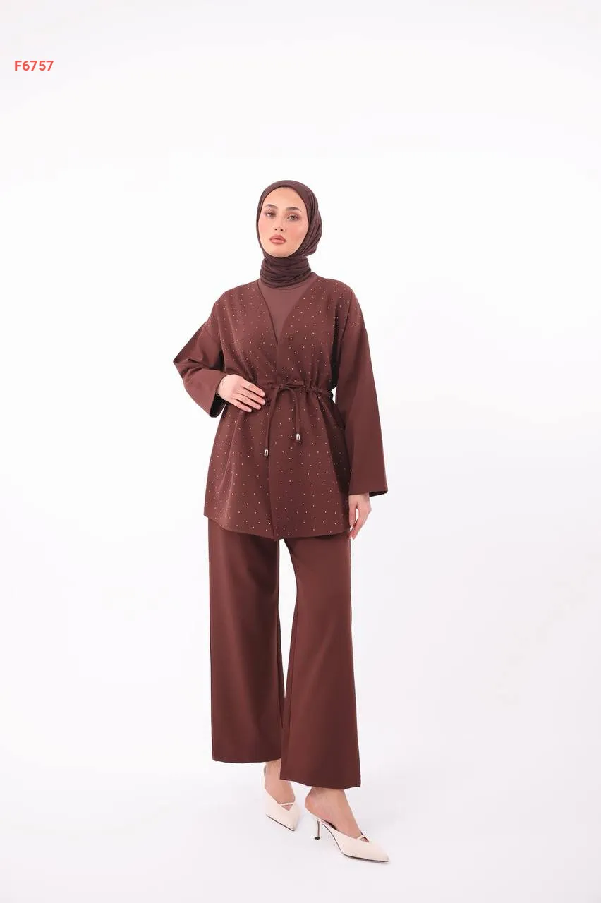 طقم بنطال دبل كريب وجاكيت حجري