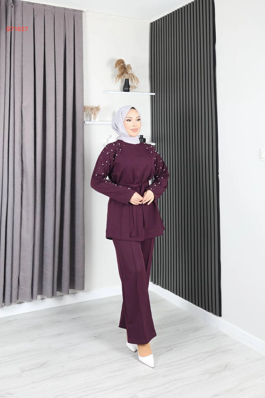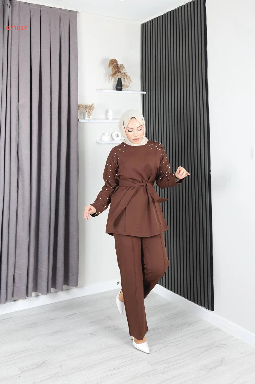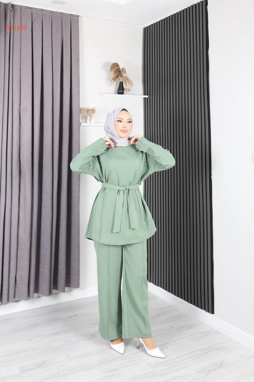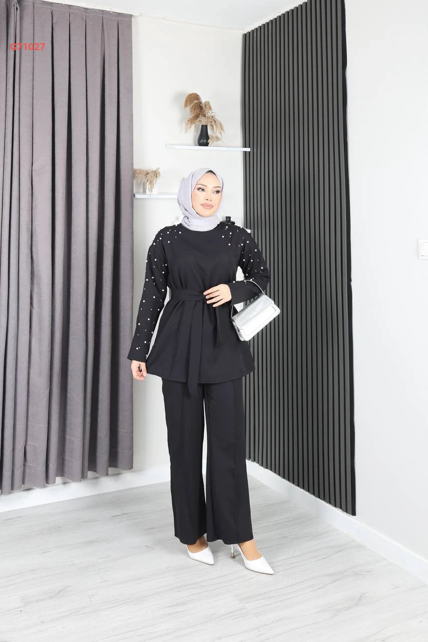 طقم بنطال دبل كريب وتونيك بأكمام لولو