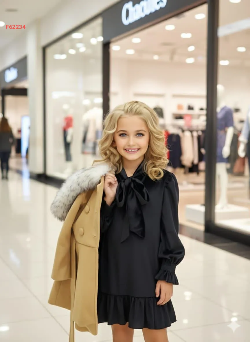 فستان بناتي مخمل وجاكيت جوخ وحقيبة