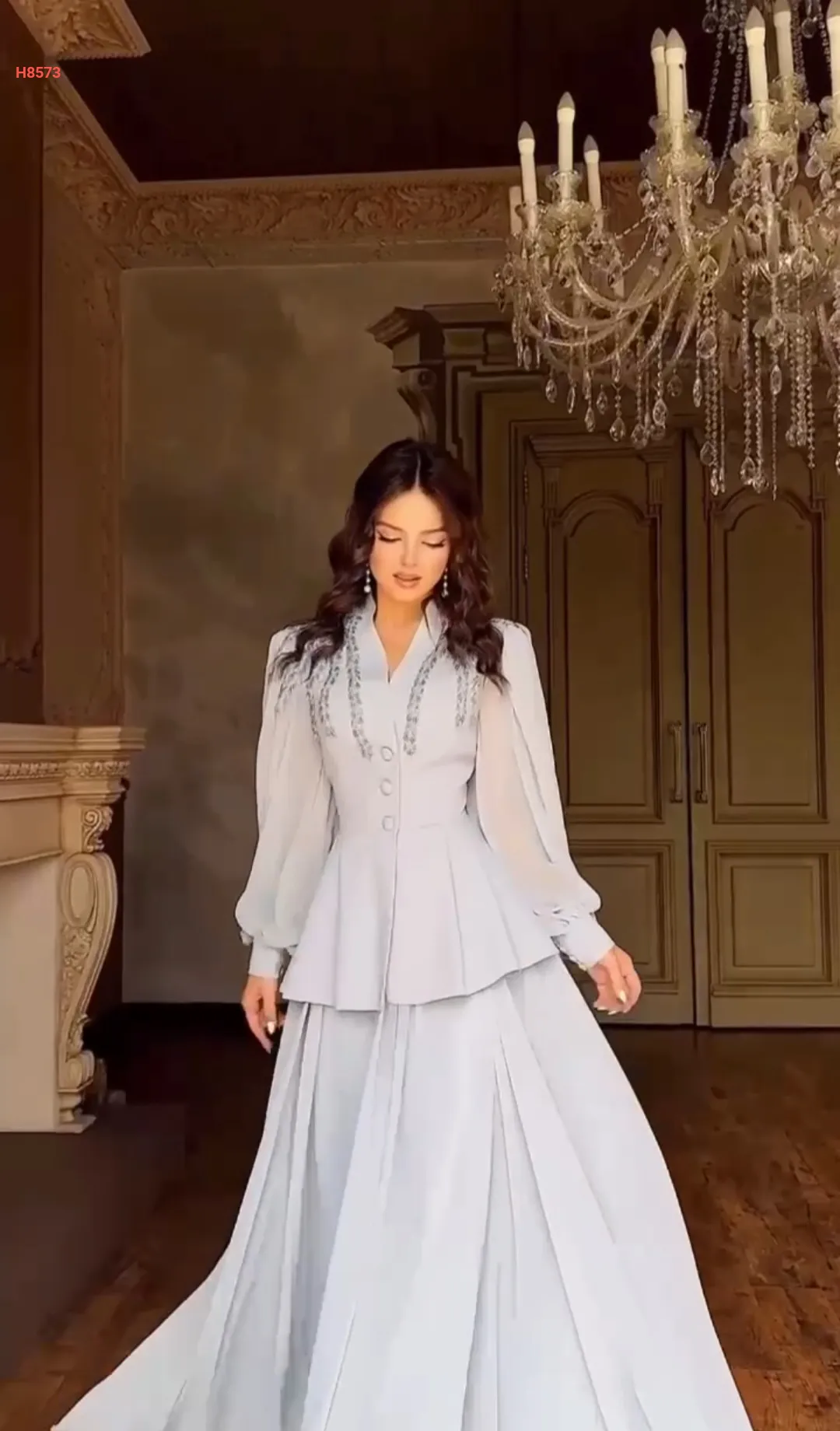 فستان بأكمام شيفون شك حجر