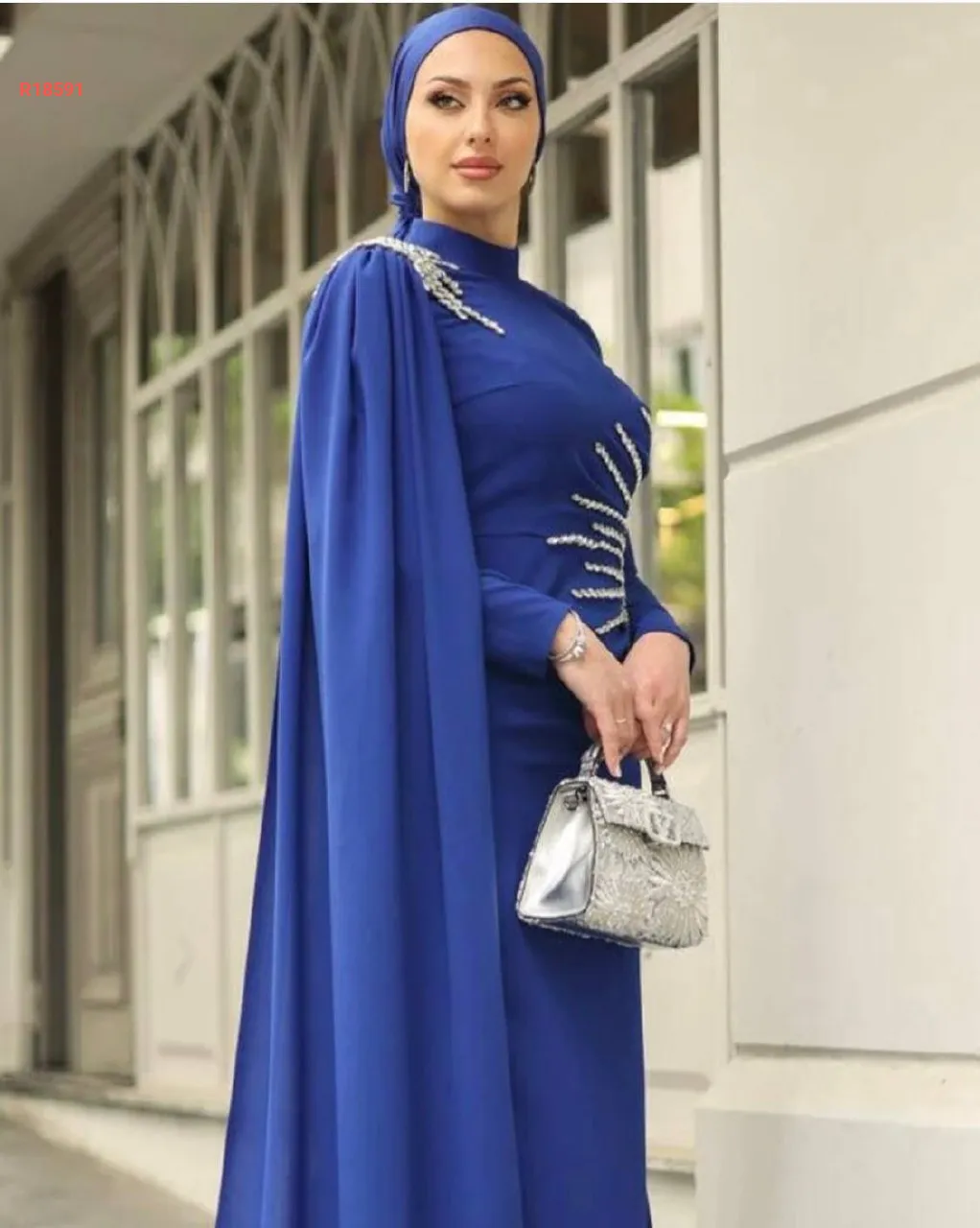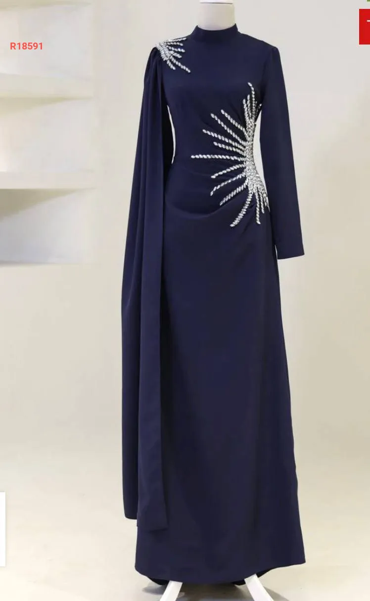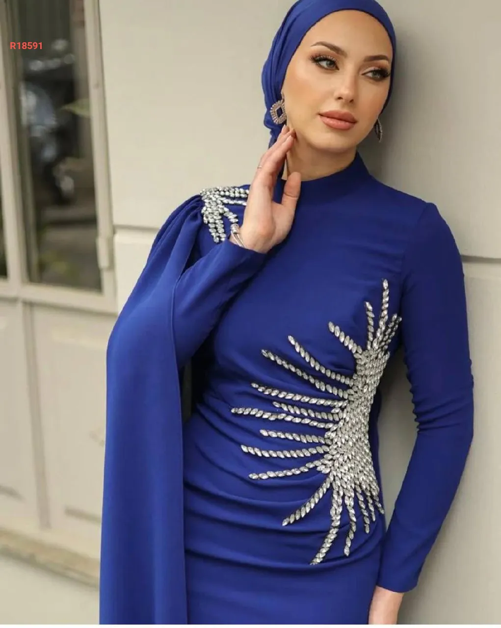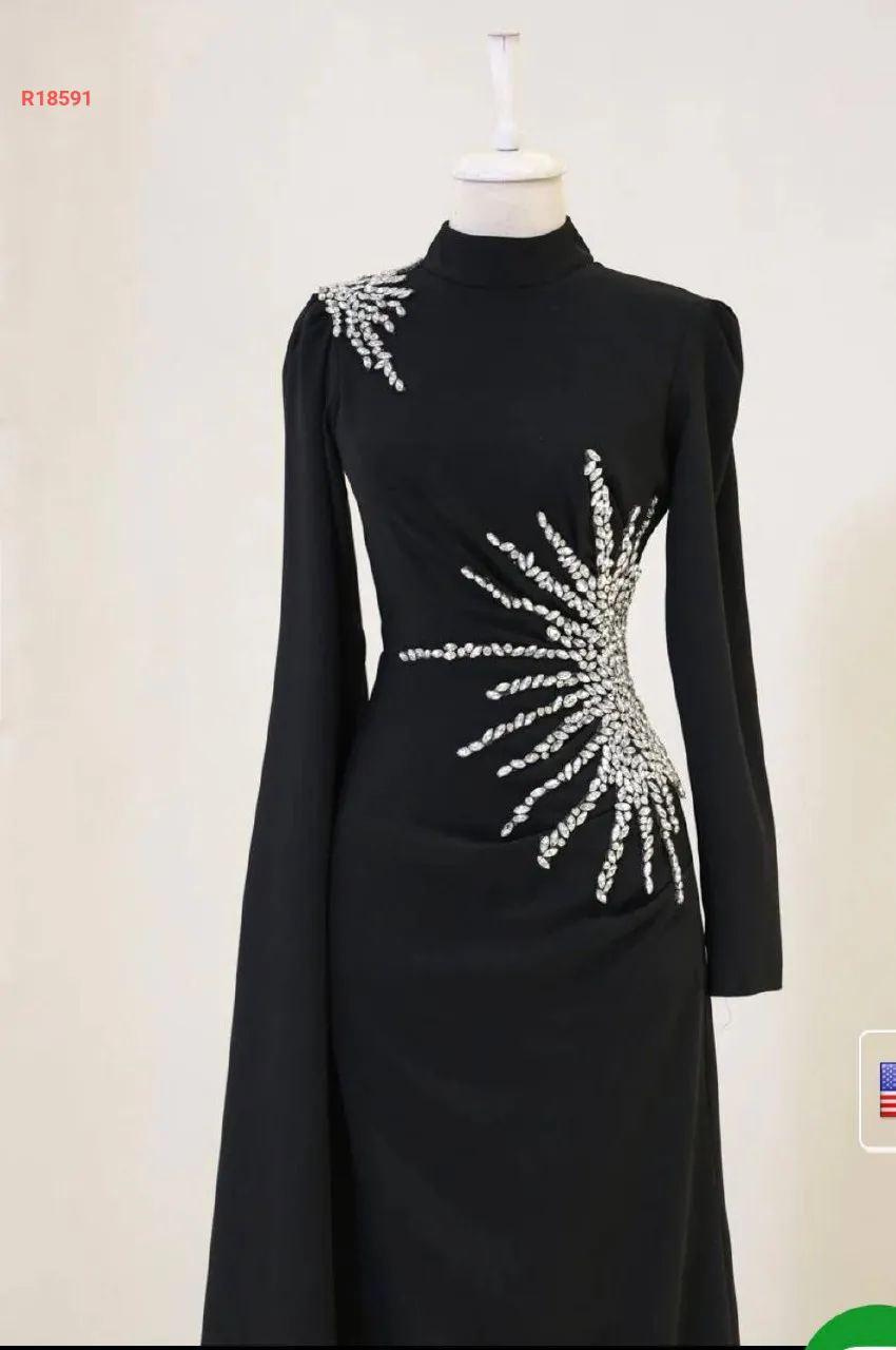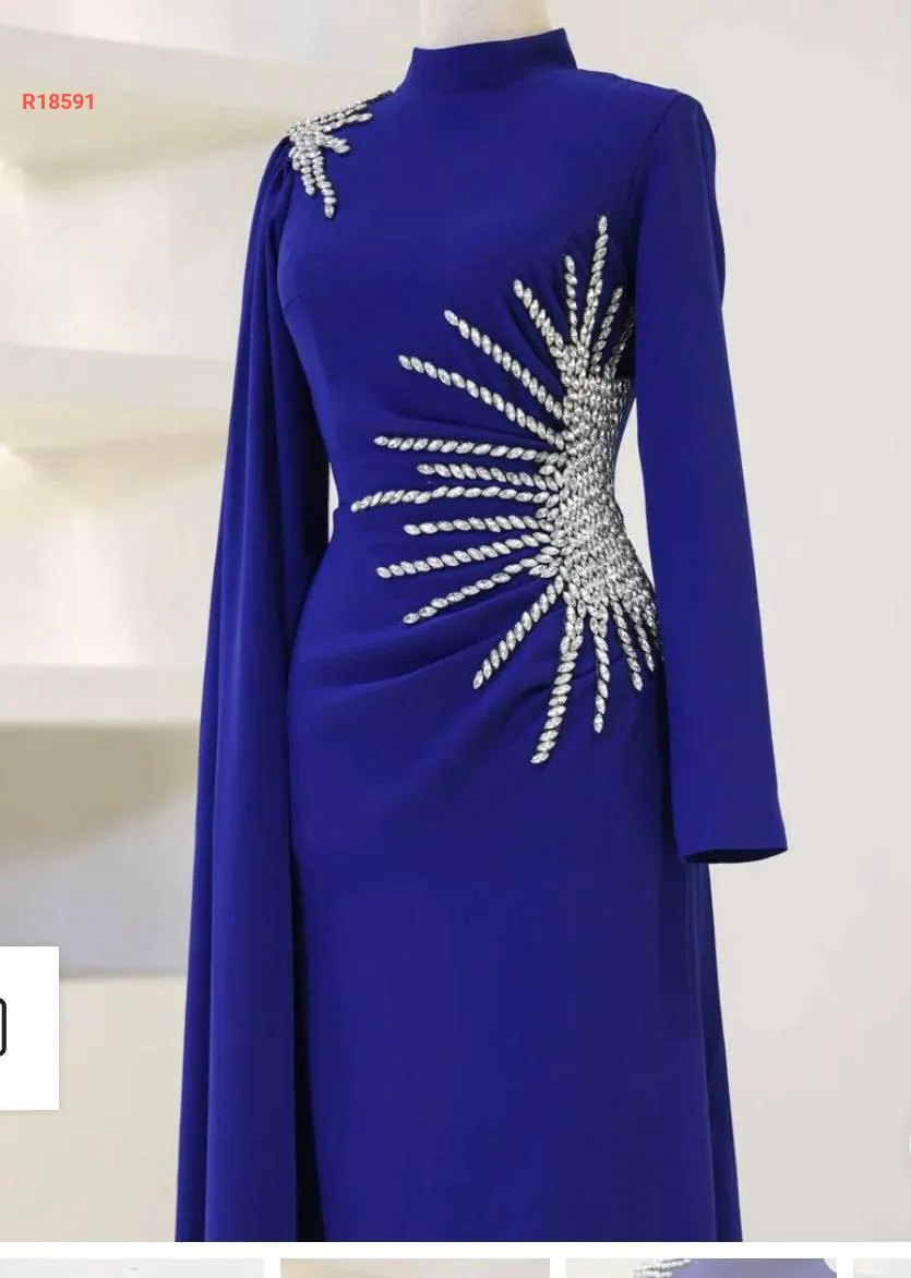 فستان محتشم ملكي بتصميم راقي من خامة دبل إيطالي فاخرة، يجمع بين الفخامة والعملية: • 👗 قصة مستقيمة أنيقة مع أكمام طويلة وكاب جانبي انسيابي يضيف حضور ملكي. • ✨ زينة لامعة بتصميم شعاعي على الكتف والخصر تعطي لمسة عصرية مميزة. • ✅ خيار مثالي لموسم الخريف ولمناسباتكم الراقية. الألوان المتوفرة: أسود – أزرق ملكي – كحلي – خمري 📏 المقاسات: 38 – 48 🚚