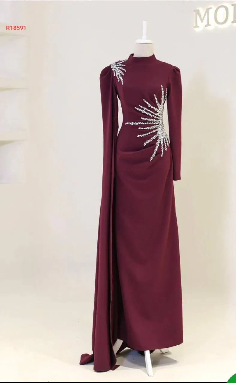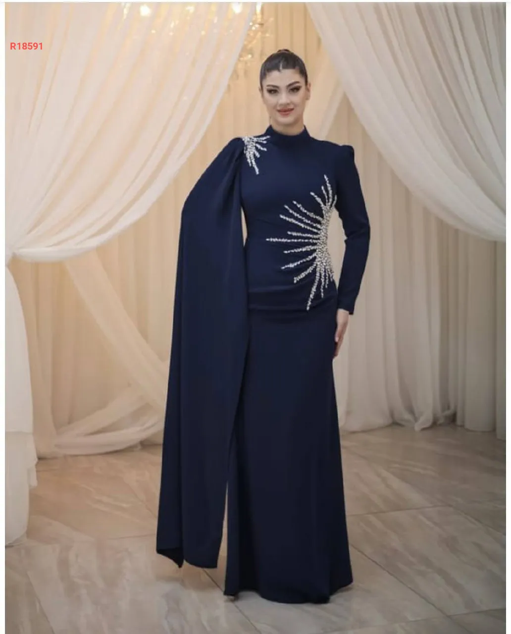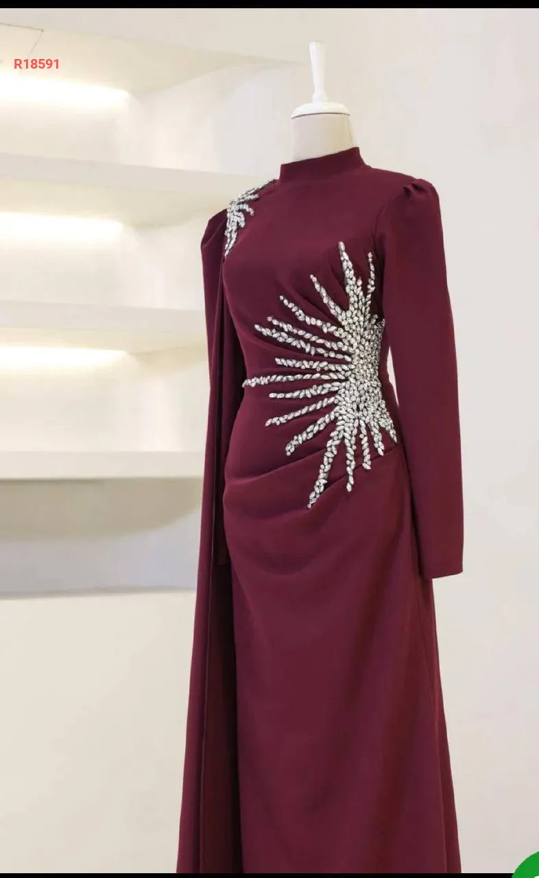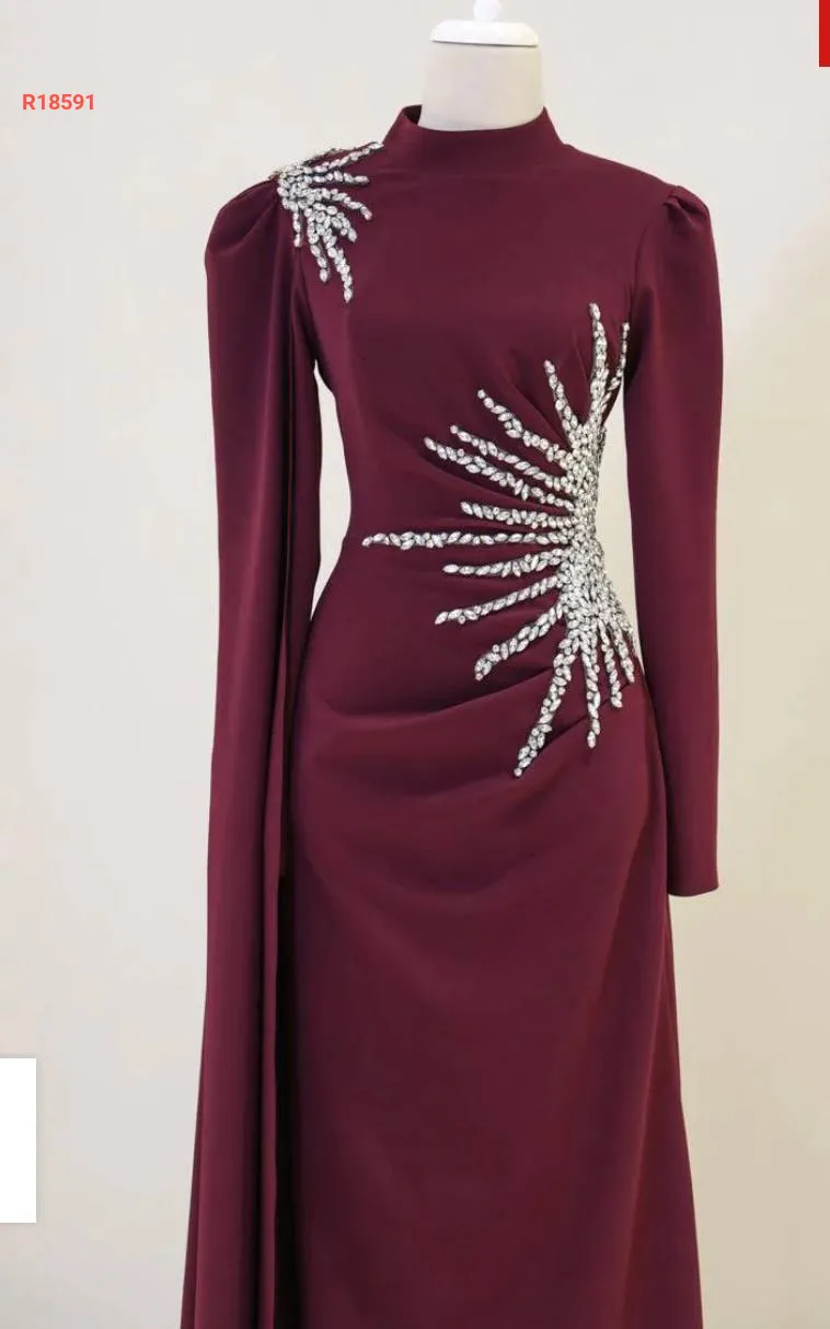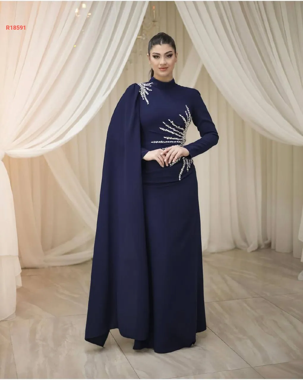 فستان محتشم ملكي بتصميم راقي من خامة دبل إيطالي فاخرة، يجمع بين الفخامة والعملية: • 👗 قصة مستقيمة أنيقة مع أكمام طويلة وكاب جانبي انسيابي يضيف حضور ملكي. • ✨ زينة لامعة بتصميم شعاعي على الكتف والخصر تعطي لمسة عصرية مميزة. • ✅ خيار مثالي لموسم الخريف ولمناسباتكم الراقية. الألوان المتوفرة: أسود – أزرق ملكي – كحلي – خمري 📏 المقاسات: 38 – 48 🚚