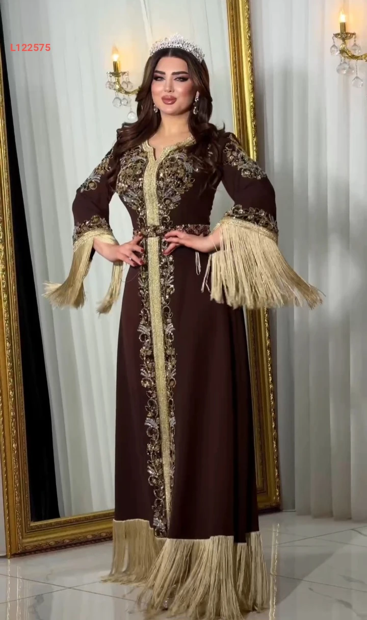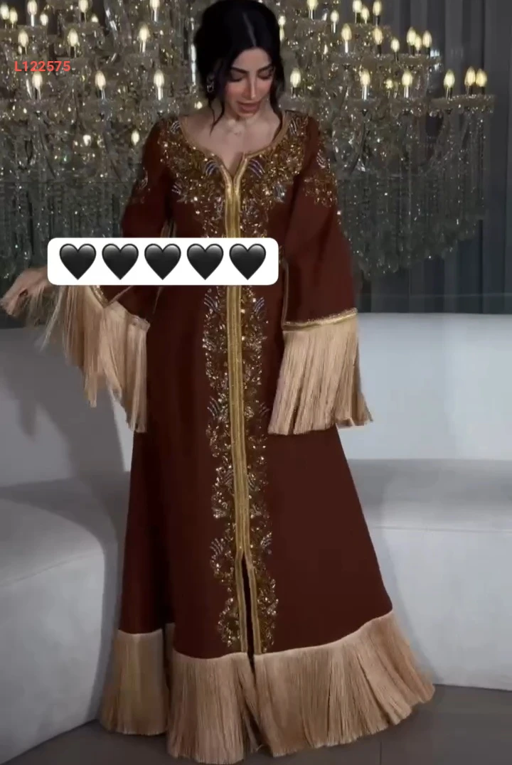 قفطان مطرز مع شراشيب