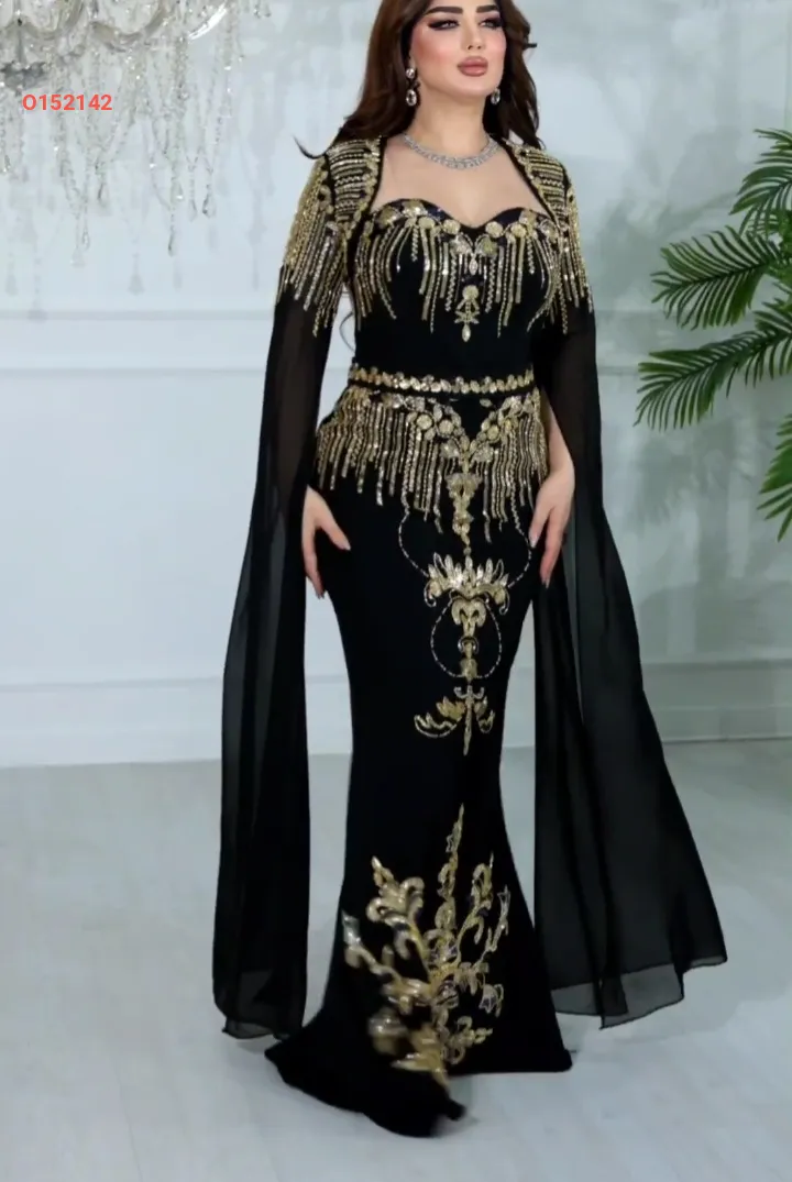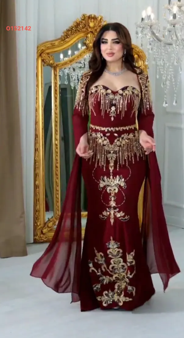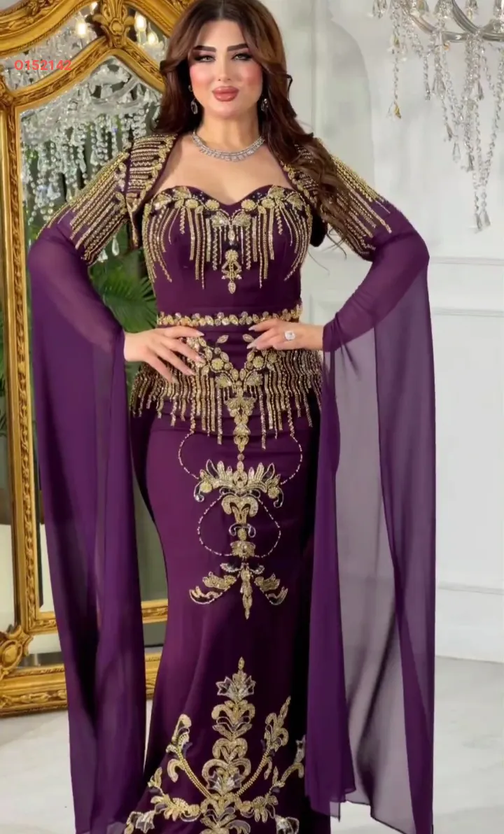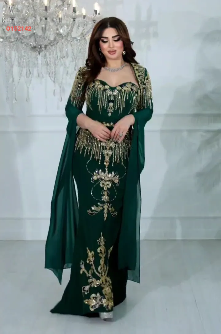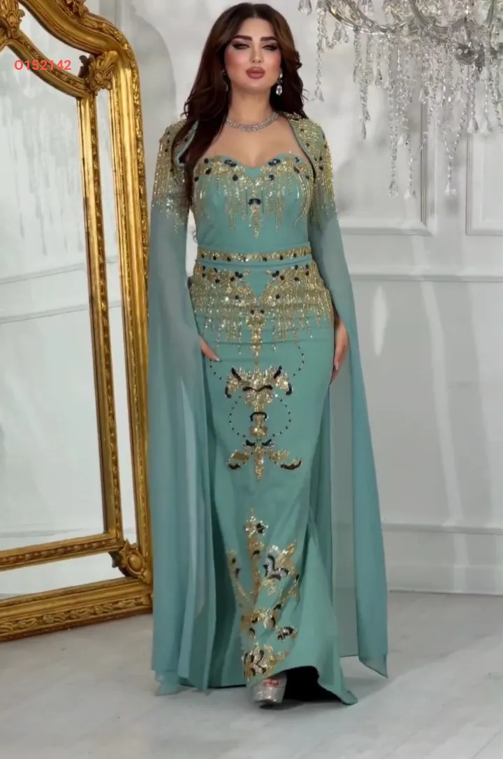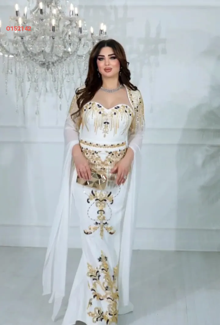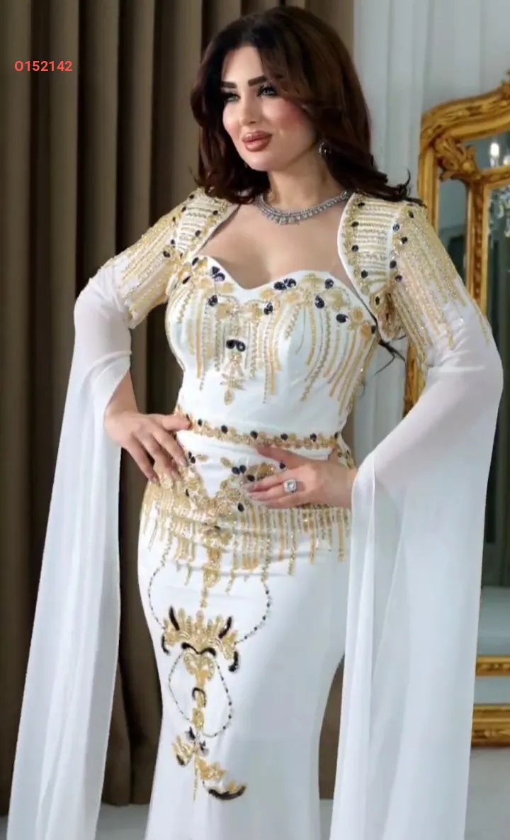 فستان سهرة مطرز مع بوليرو بأكمام شيفون