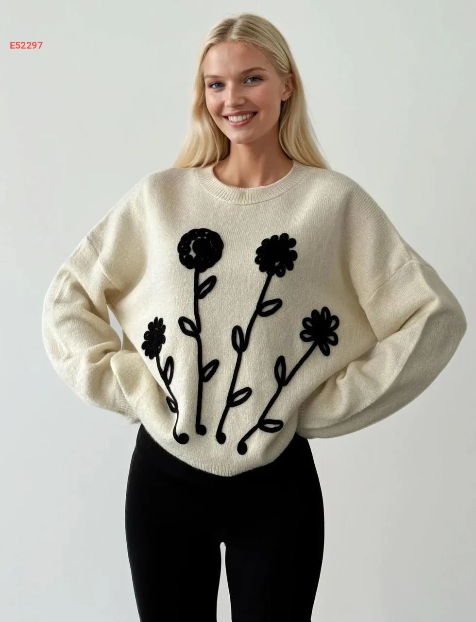 كنزة تريكو مطرزة ورد