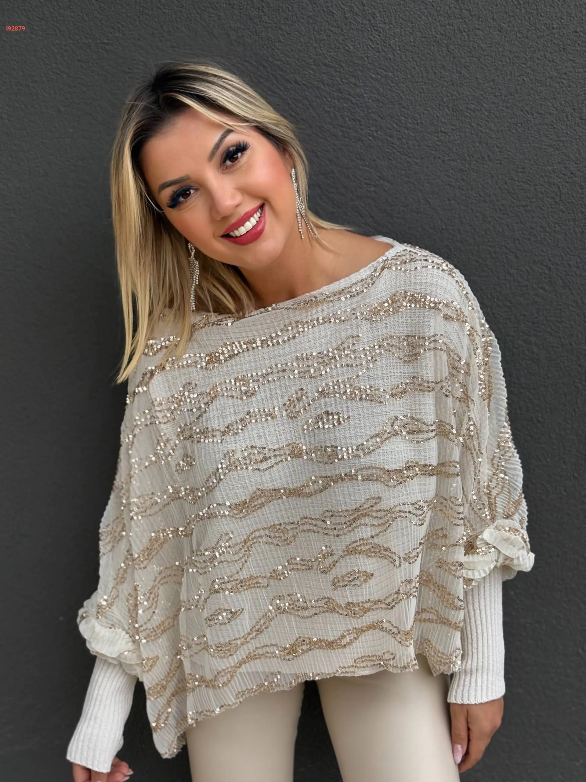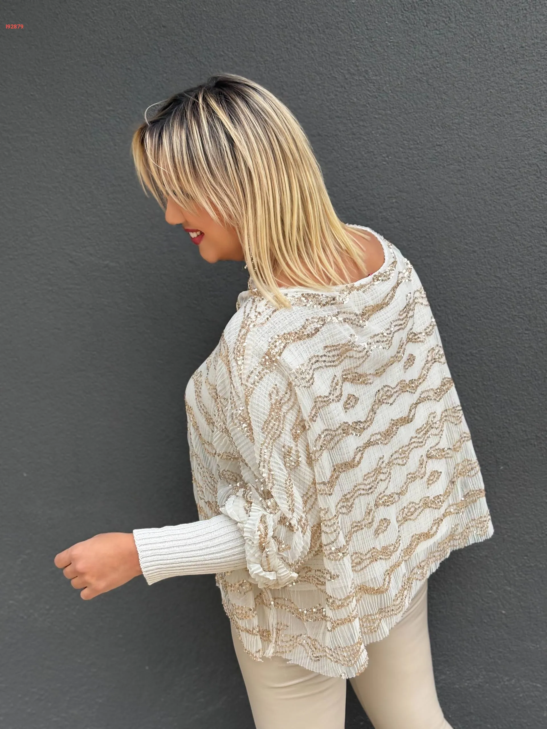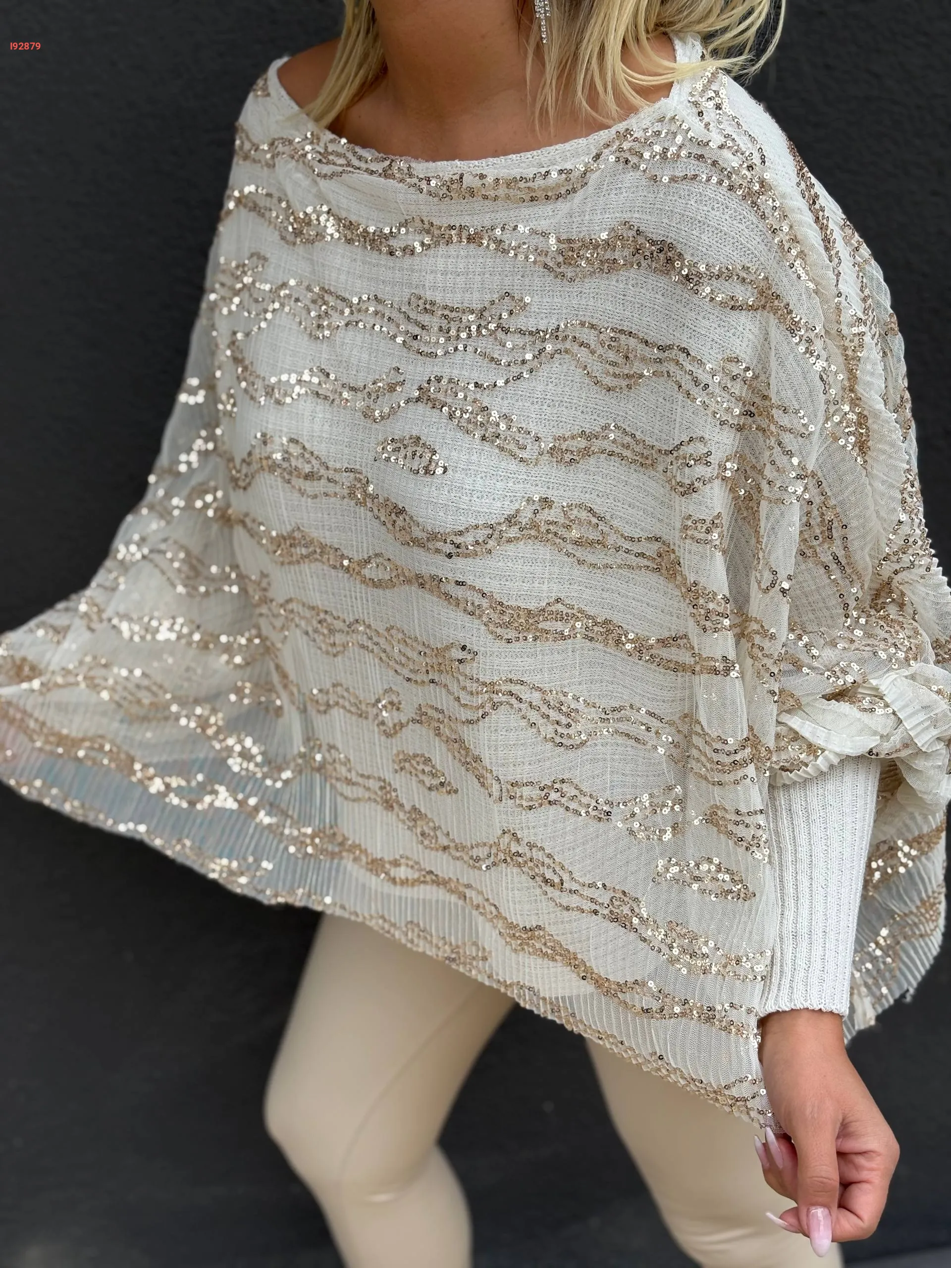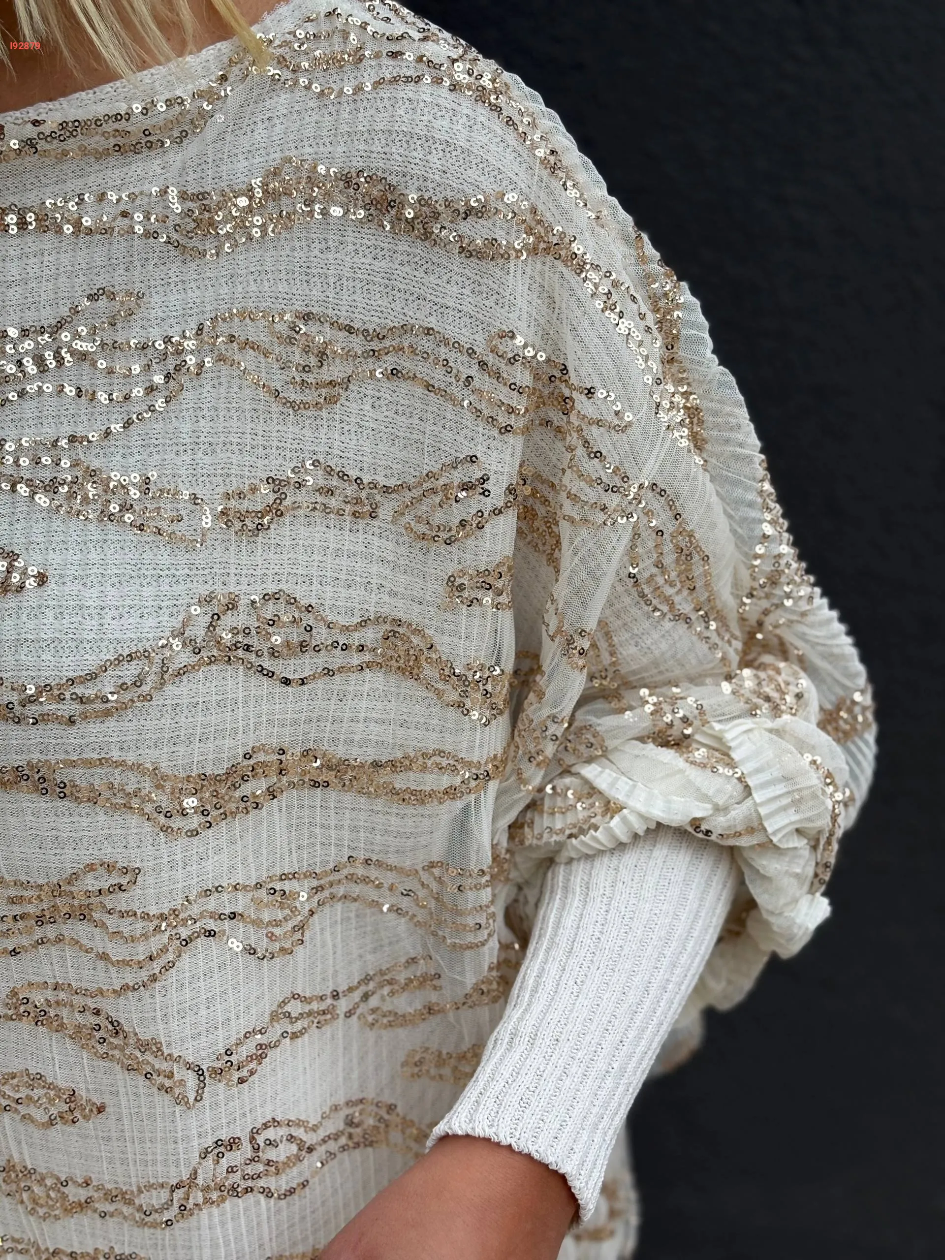 بلوزة تريكو بطبقة تول مطرزة باييت