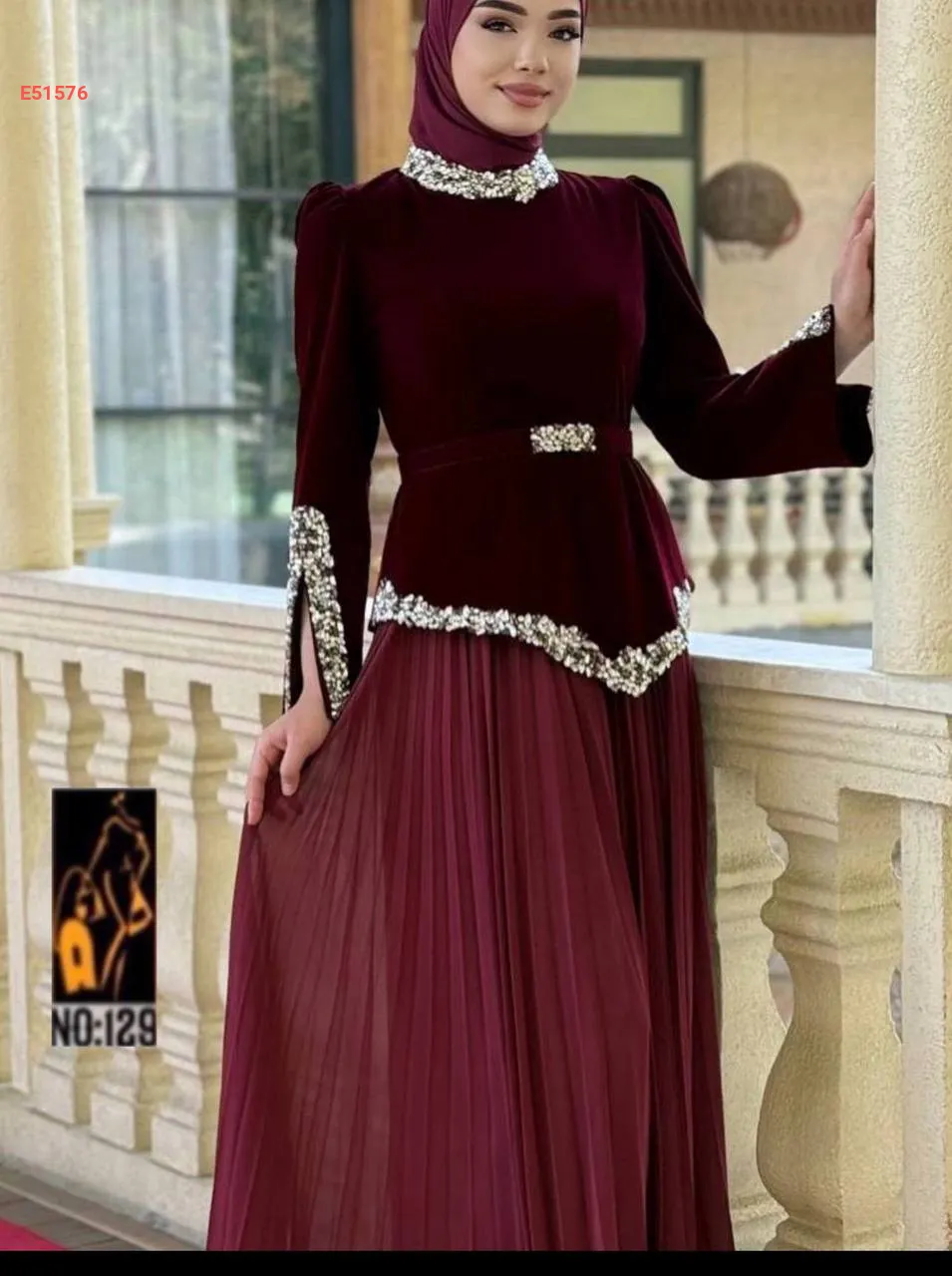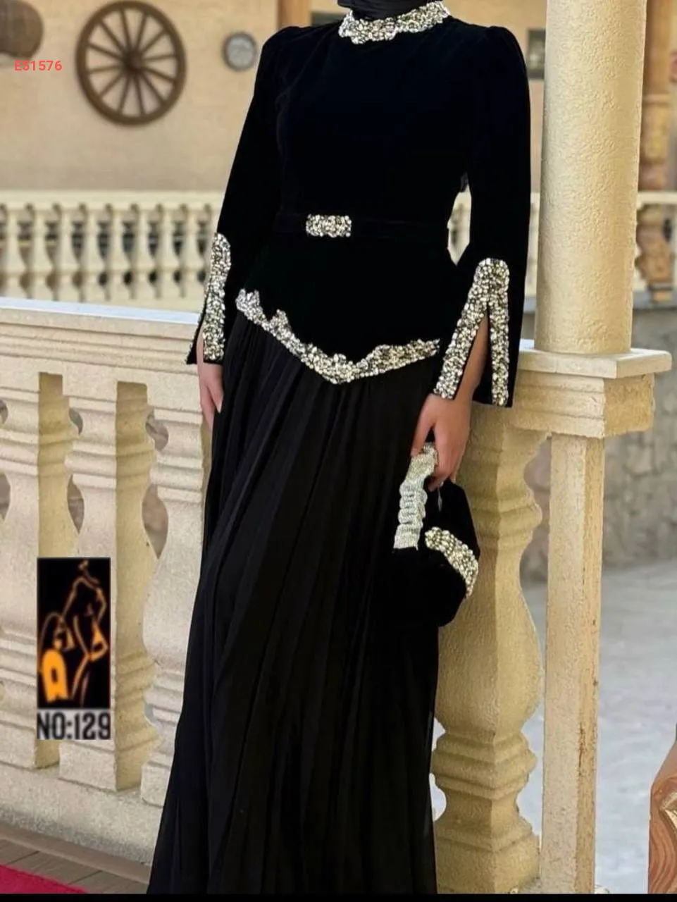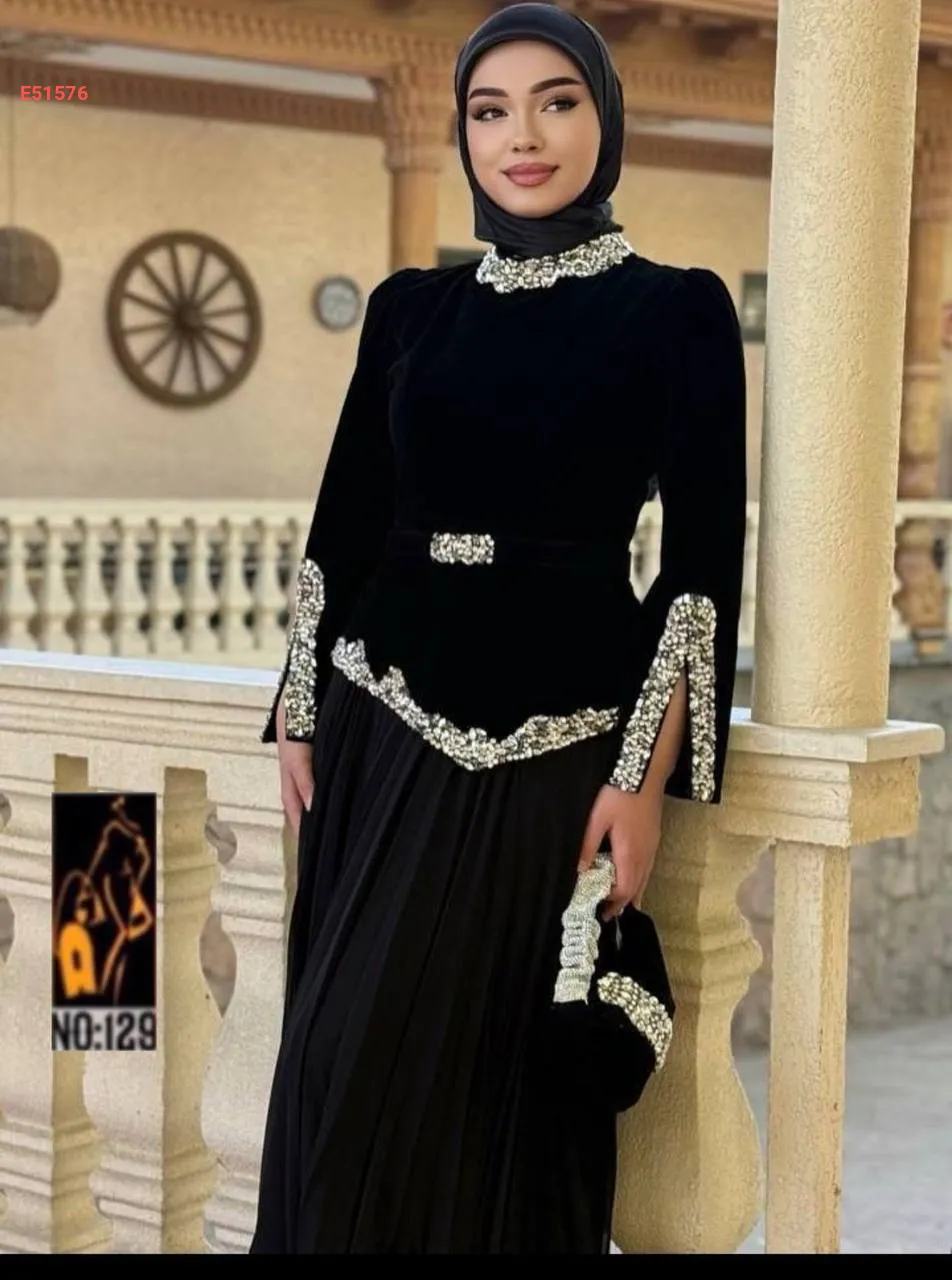 فستان قماش مخمل شيفون كلوش كامل مبطن