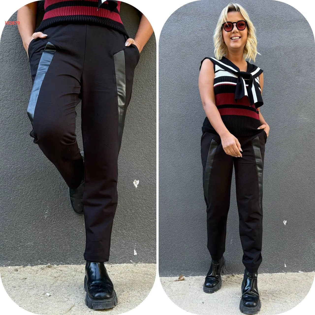 بنطال تريكو مقلم عالجنب