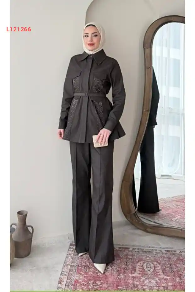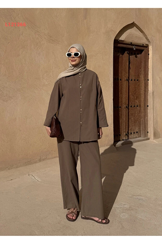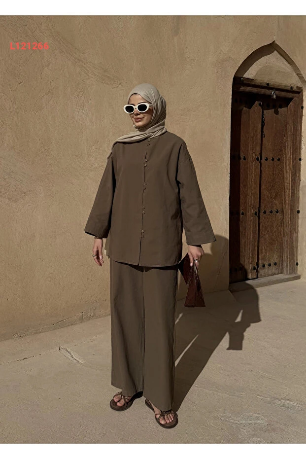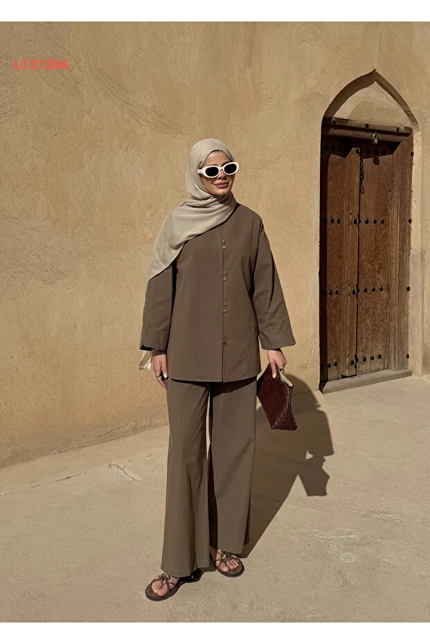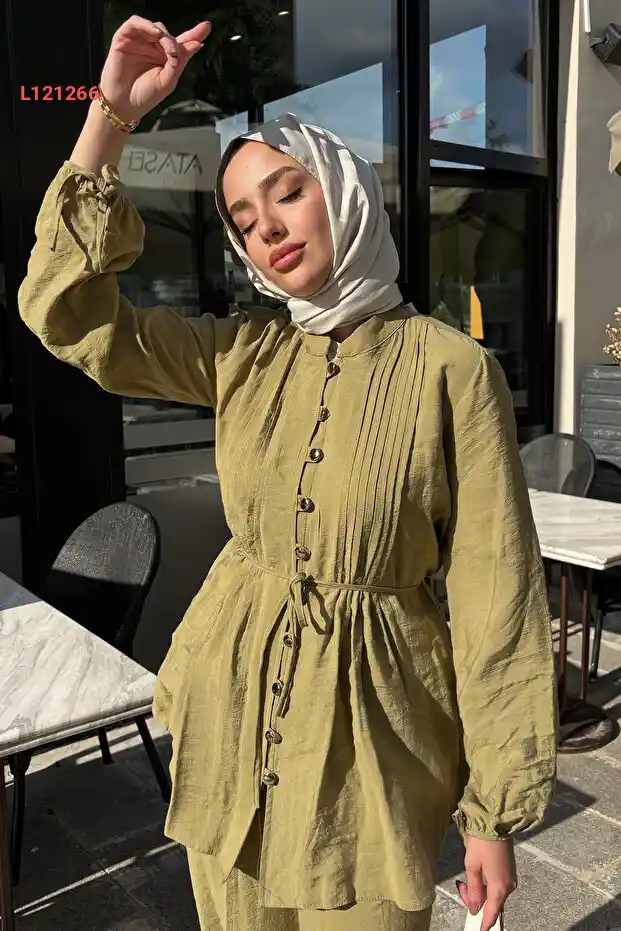 استمتع بالأناقة العصرية مع مجموعة MODA AKSA 8977 MASSİMO، التي تتميز بتصميمها الفريد وأزرارها الصغيرة الأنيقة. مصنوعة من قماش الكتان الفاخر بلون الحاكي الجذاب، توفر لك هذه المجموعة راحة مثالية لمظهر أنيق يناسب كل المناسبات. ارتديها لتصبح محط الأنظار أينما ذهبت!