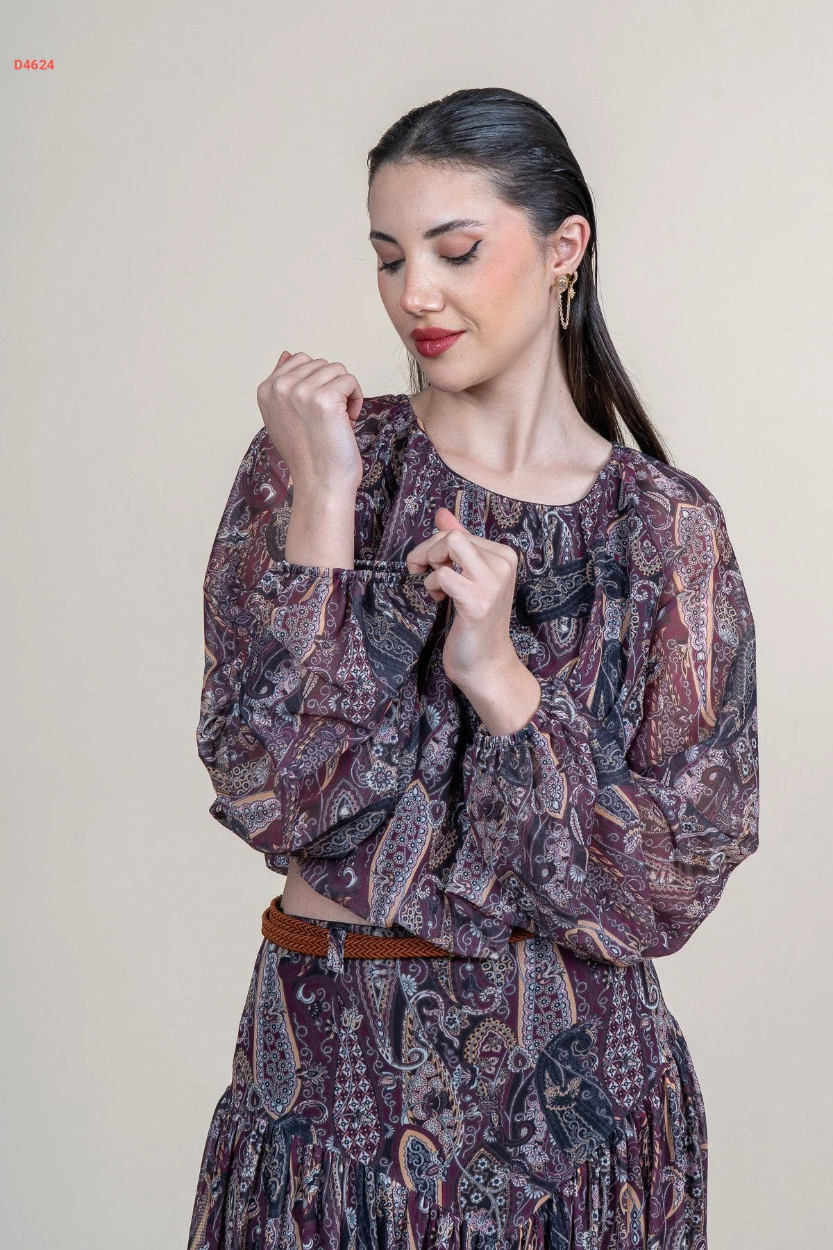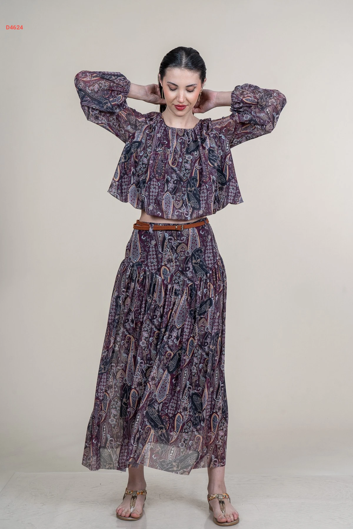 طقم تنورة شيفون معرق مع بلوزة