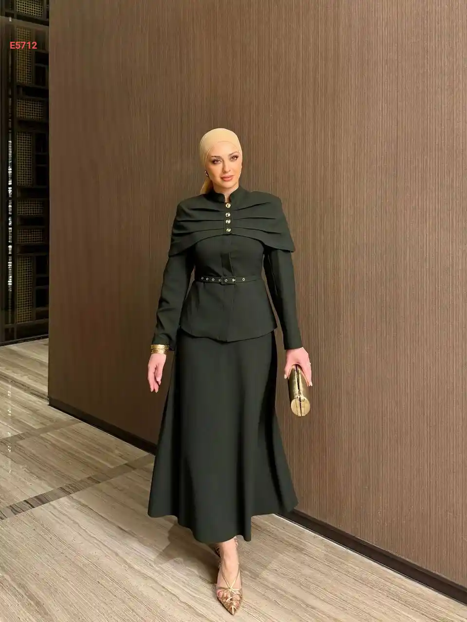 طقم 3 قطع مع بروش جيليه + بلوز + بنطال بلوز قماش كريب جيليه بنطال قماش دبل 38 40 42 44 46