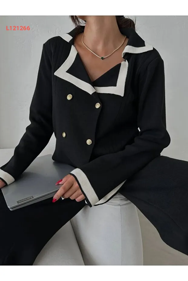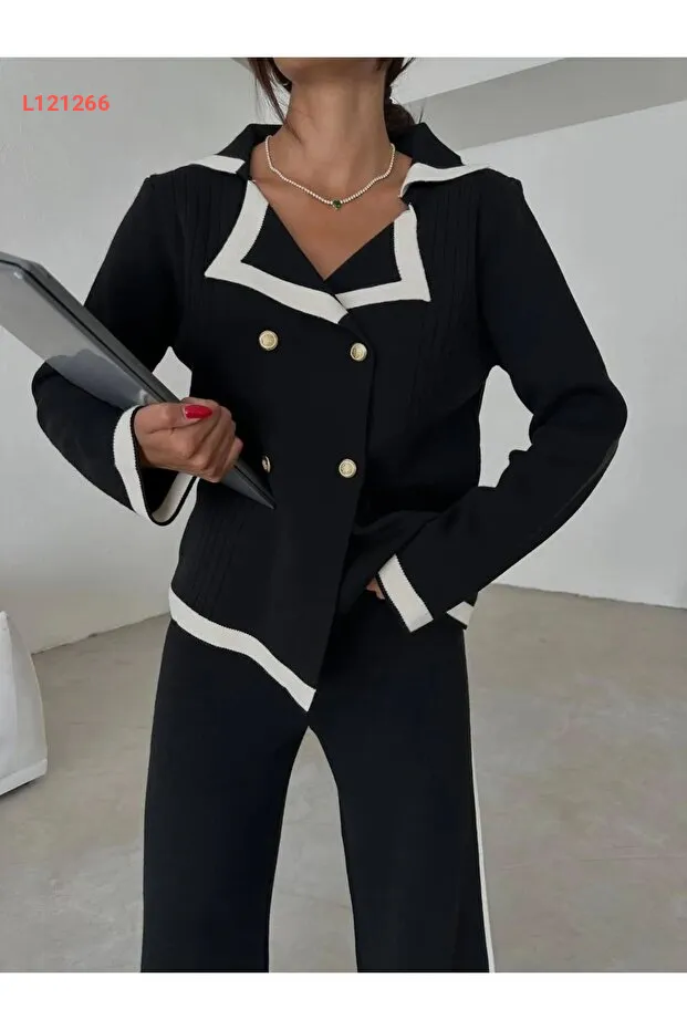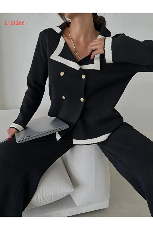 طقم تريكو قماش فاخر بأزرار ذهبية