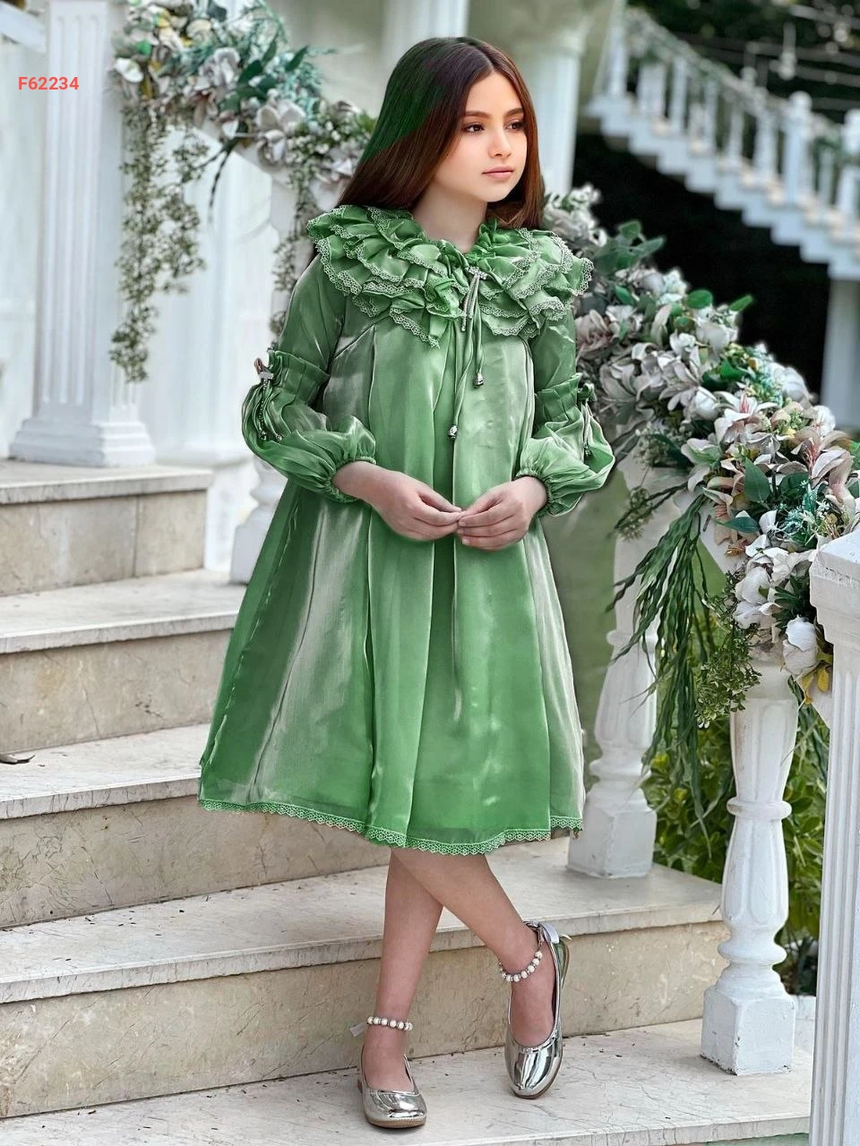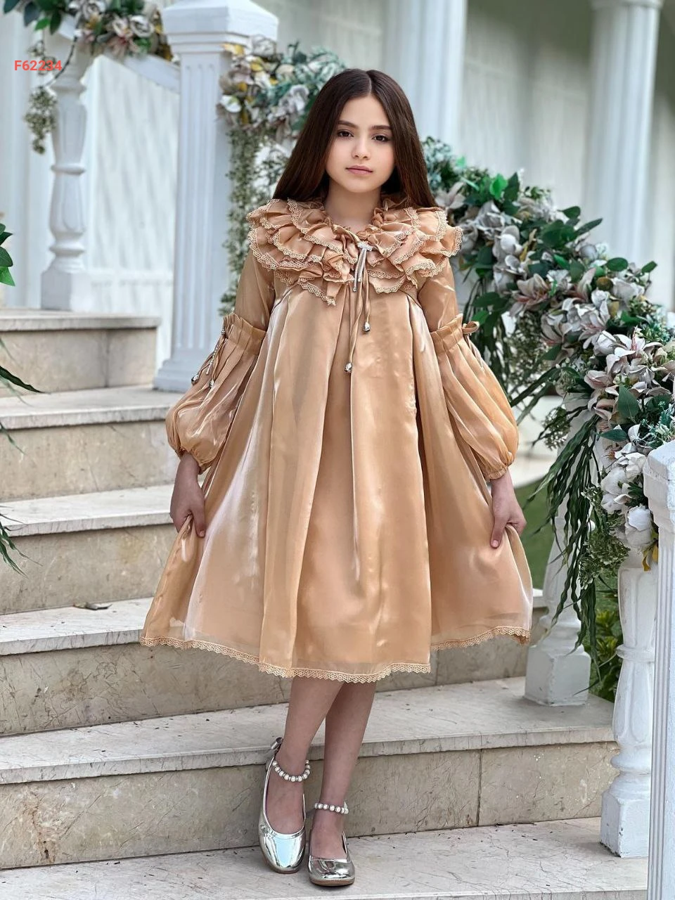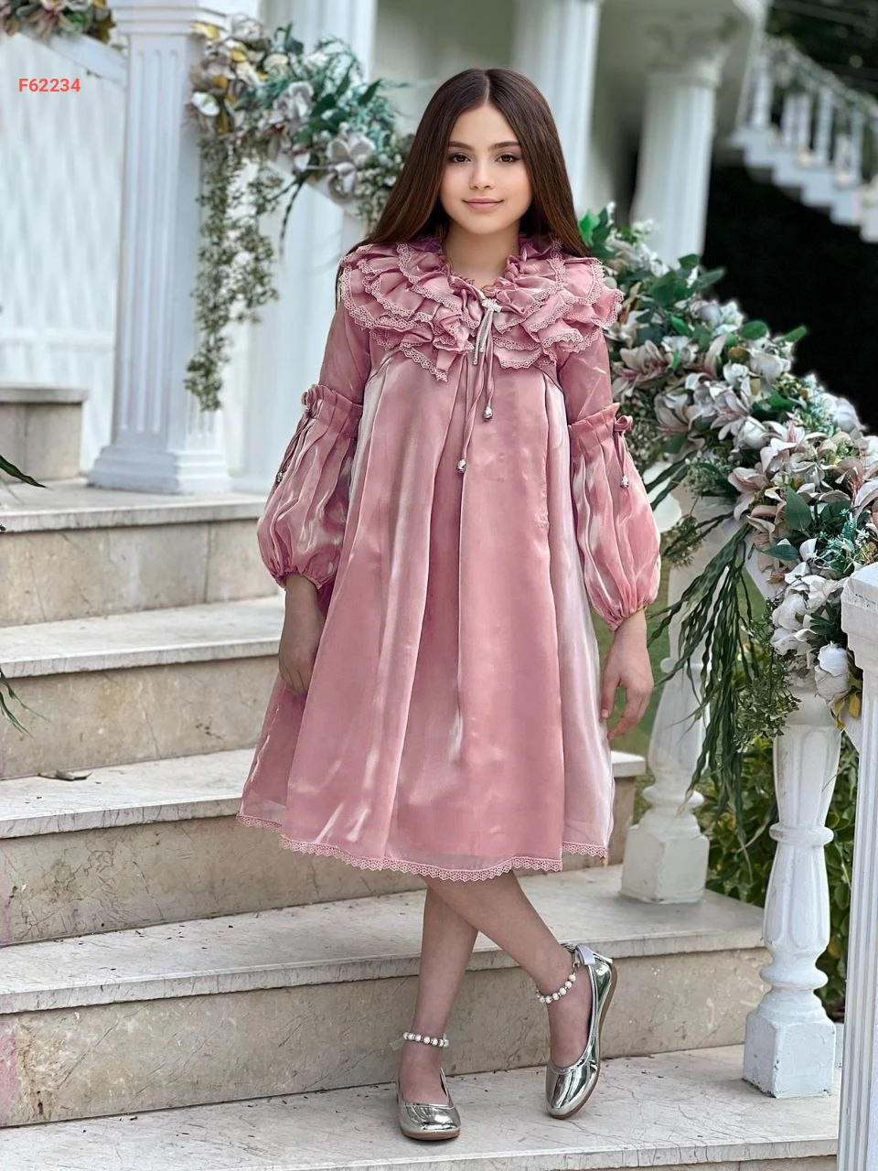 فستان بناتي كم طويل كشكش
