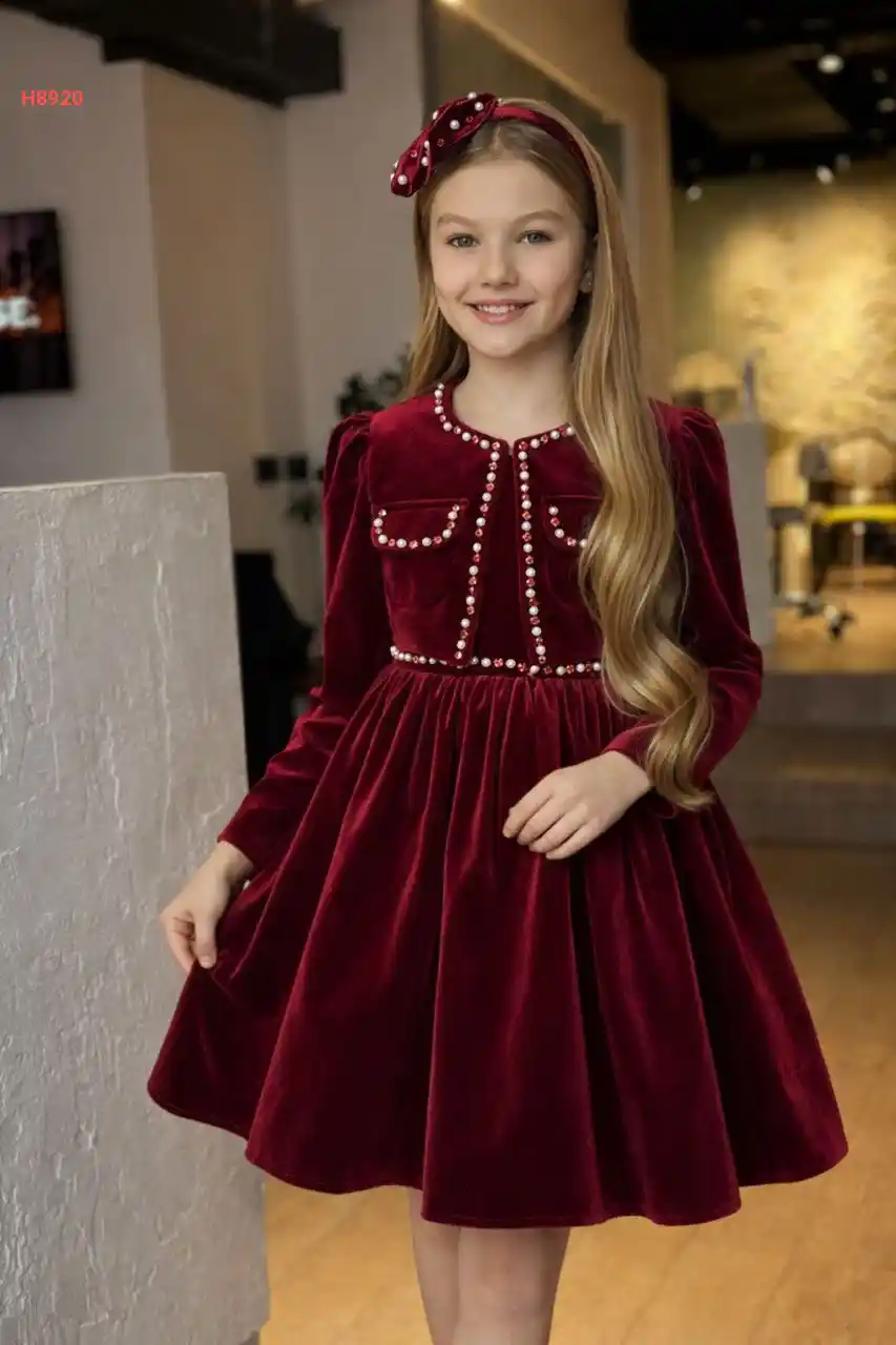 فستان بناتي مخمل مع ورد ولول...