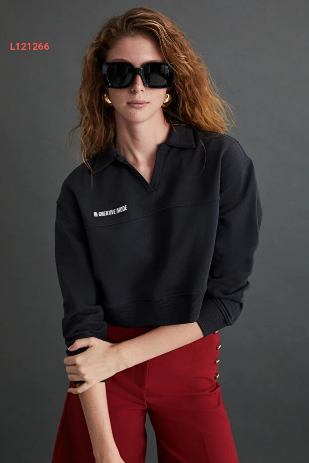 سويت شيرت أنثراسيت نسائي من قطن عضوي من غريماجانج
