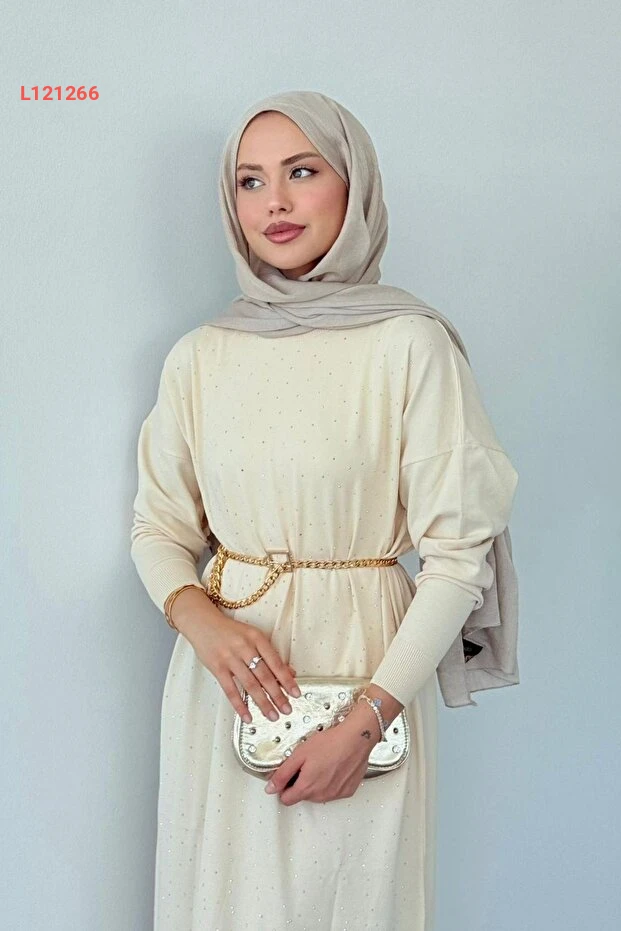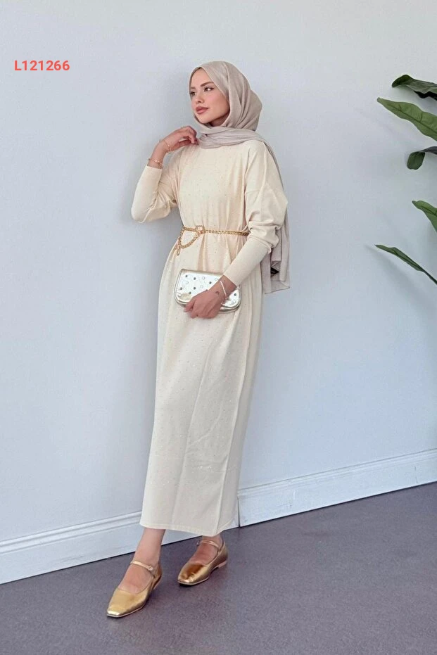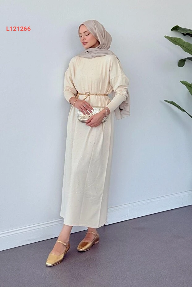 استمتعي بإطلالة أنيقة ومميزة مع فستان "Hazamoda Batum" المصنوع من قماش المرسيريز الفاخر بلون الكريمة. يتميز بتفاصيله المزينة بالأحجار اللامعة التي تضيف لمسة من الفخامة، مما يجعله الخيار المثالي لمناسباتك الخاصة. اجمعي بين الراحة والأناقة في هذا الفستان الذي يحتفل بتميزك وجمالك.