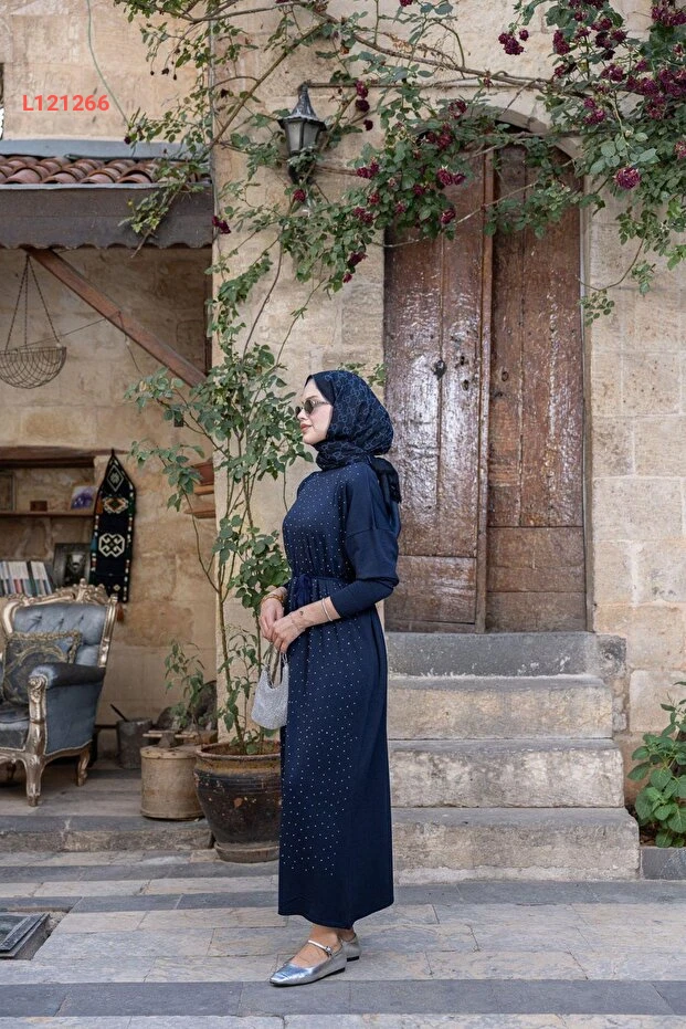 استمتع بأناقتك مع فستان "Hazamoda Batum" المصنوع من المرسيريز الفاخر، الذي يجمع بين الراحة والأناقة. مع تفاصيله الجذابة المزينة بالأحجار، ستحصلين على إطلالة مميزة تناسب مناسباتك الخاصة، بينما يمنحك اللون الأزرق الداكن لمسة من الجاذبية والتألق.