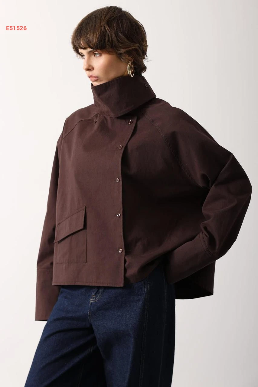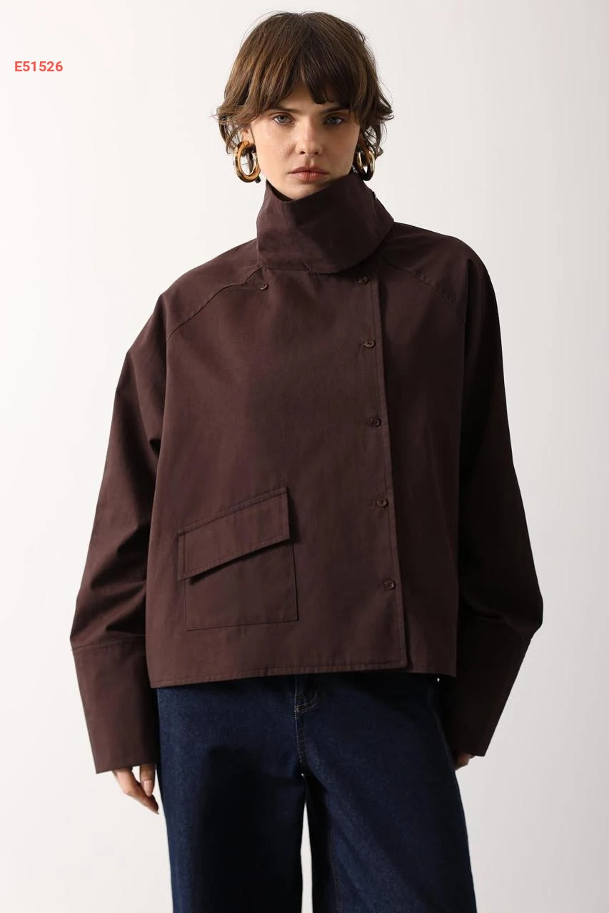 جاكيت بياقة عالية وجيب