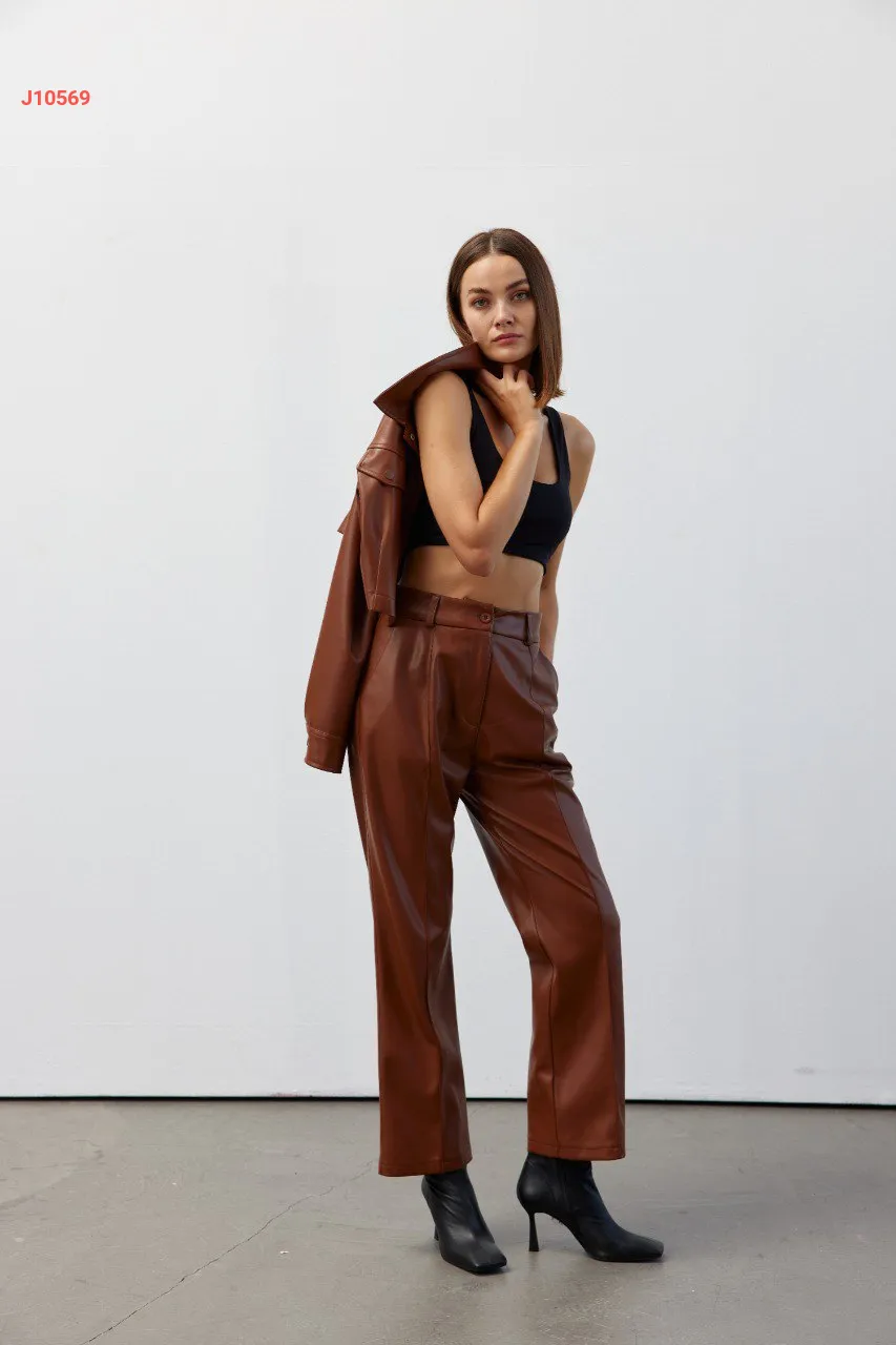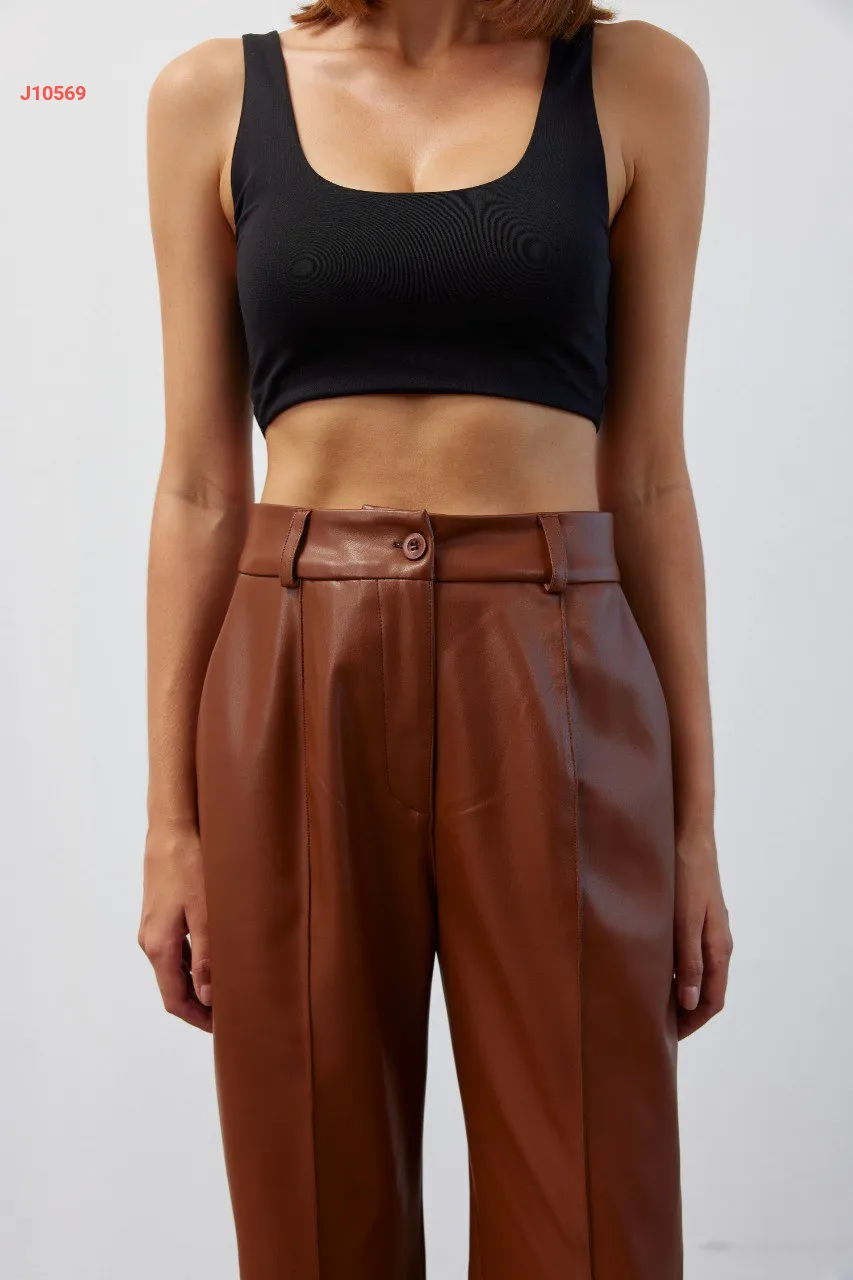 بنطال جلد خصر عالي