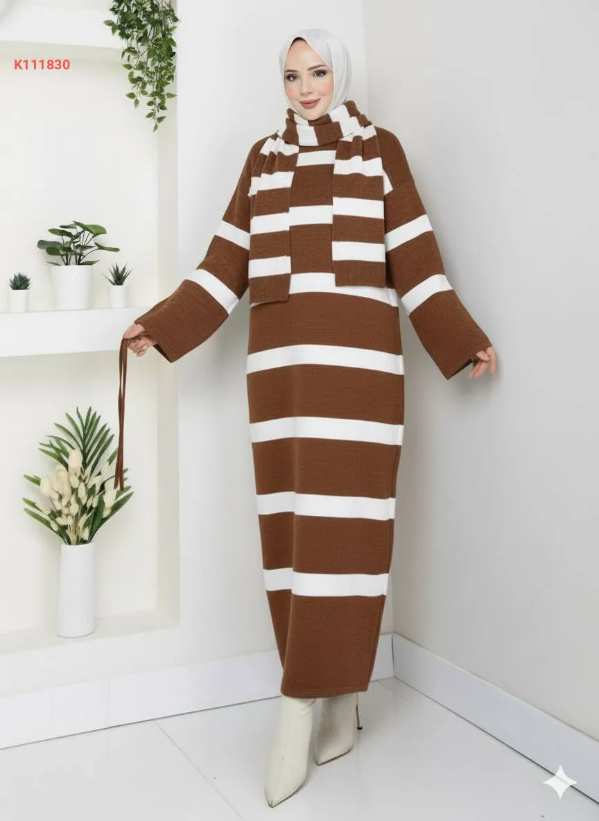 فستان تريكو مع وشاح محجبات
