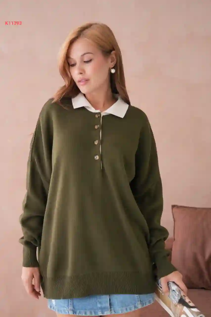 كنزة تريكو بأزرار عالقبة