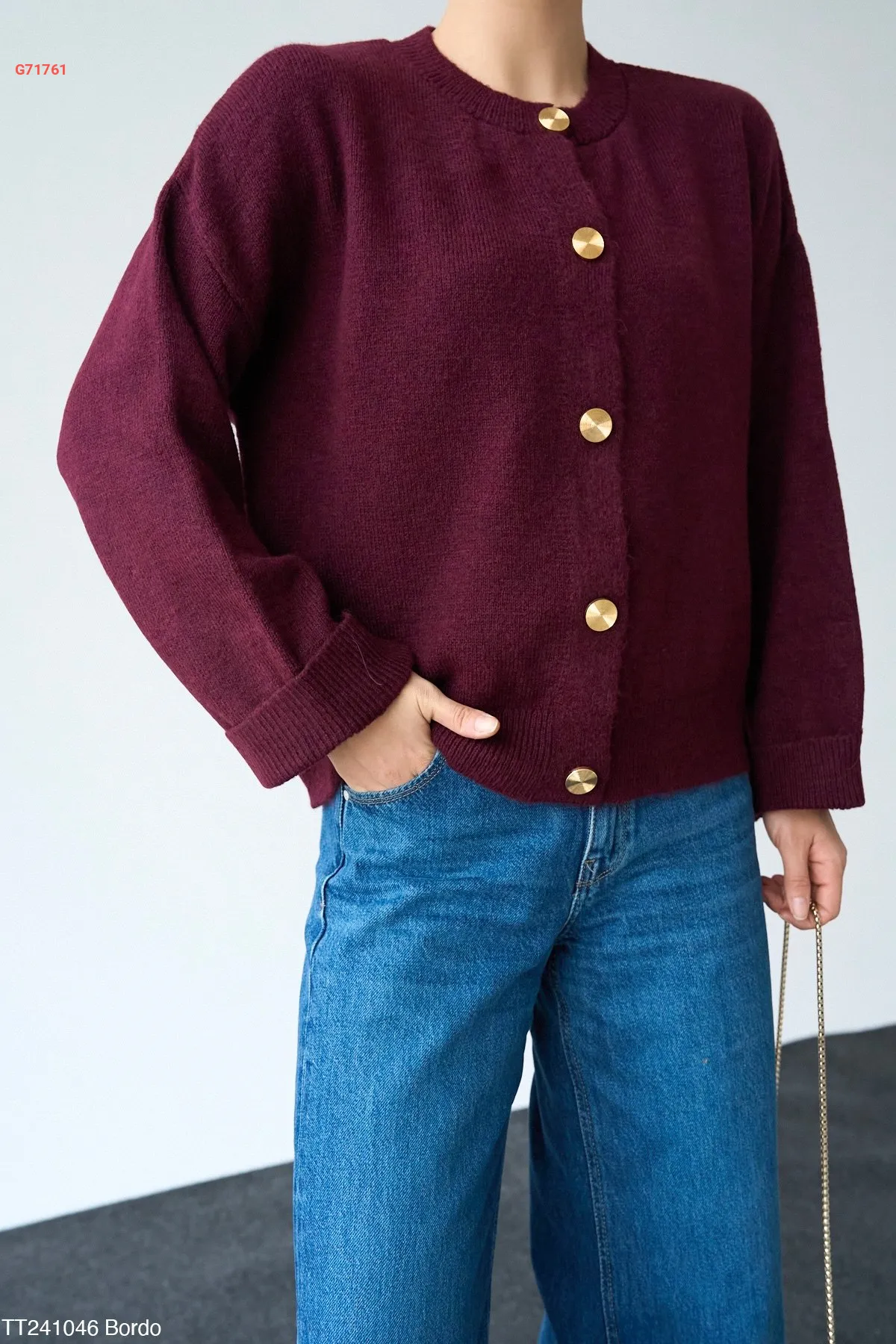جاكيت تريكو بأزرار دهبي