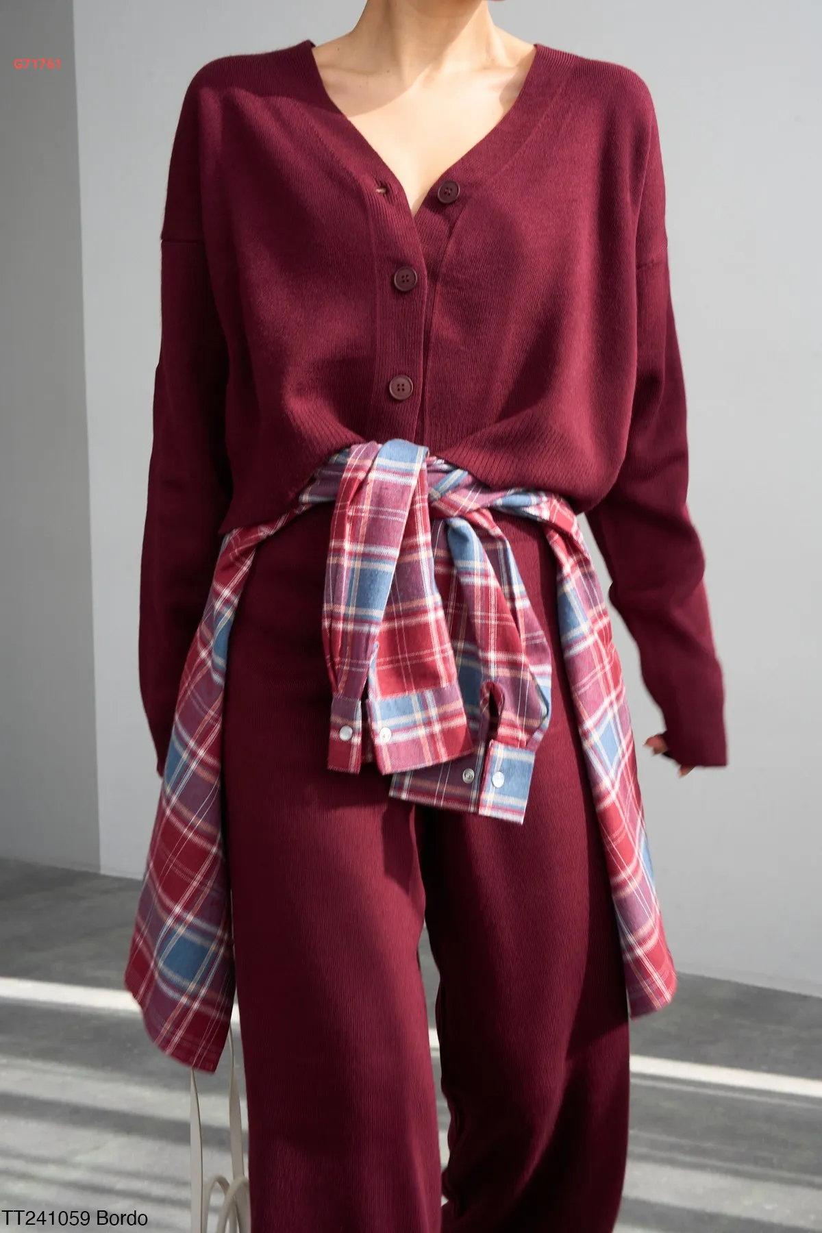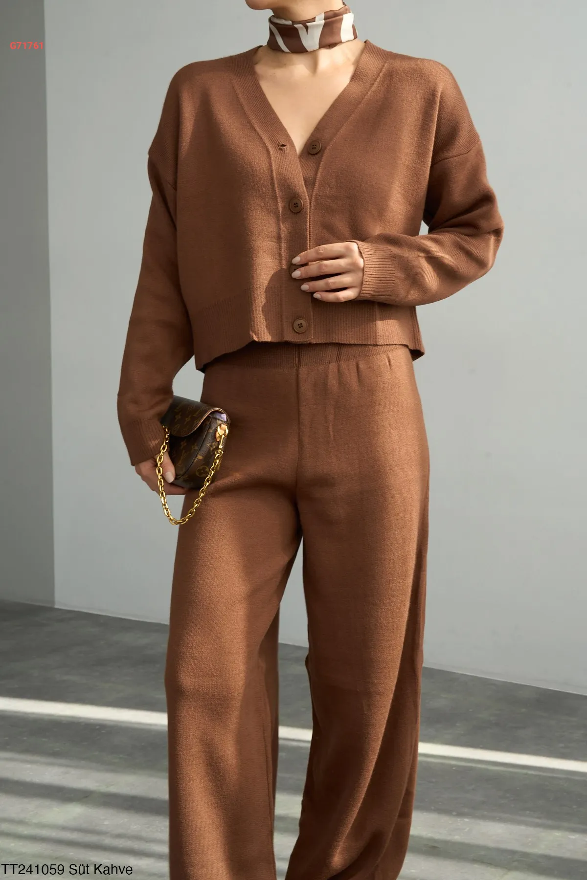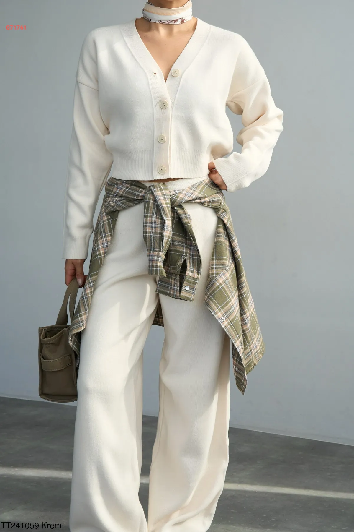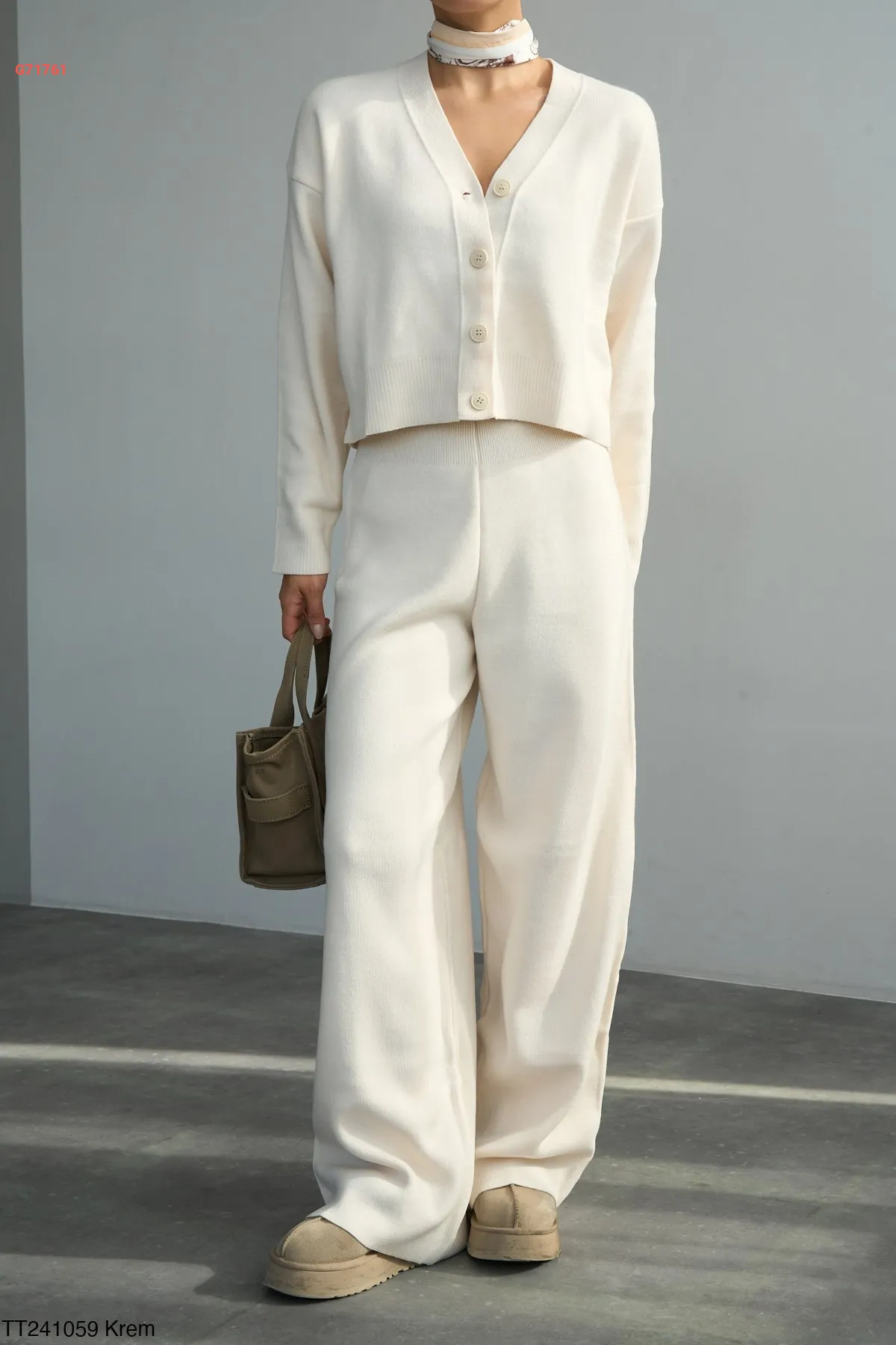 طقم بنطال تريكو وكنزة قبة v